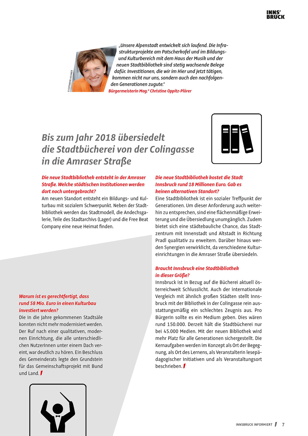 „Unsere Alpenstadt entwickelt sich laufend. Die Infrastrukturprojekte am Patscherkofel und im Bildungsund Kulturbereich mit dem Haus der Musik und der