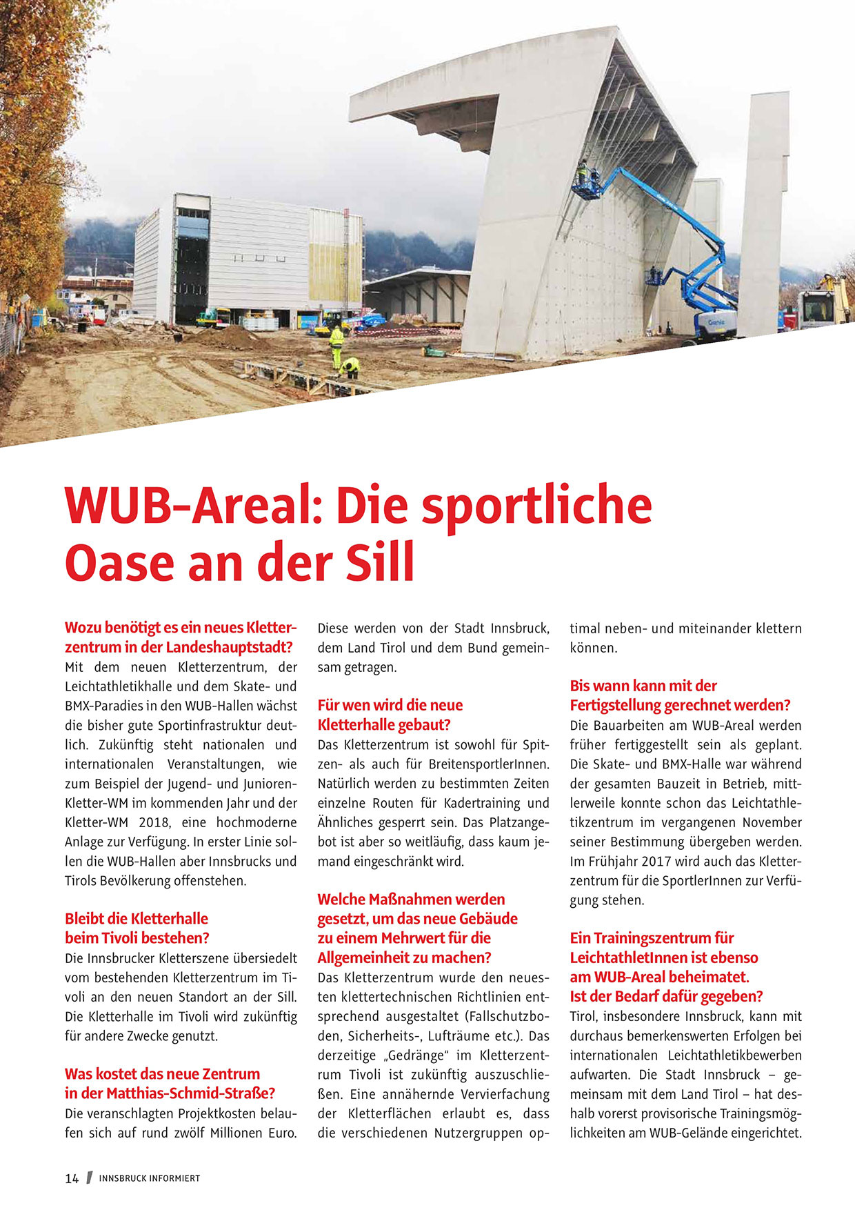 Anlage zur Verfügung. In erster Linie sollen die WUB-Hallen aber Innsbrucks und