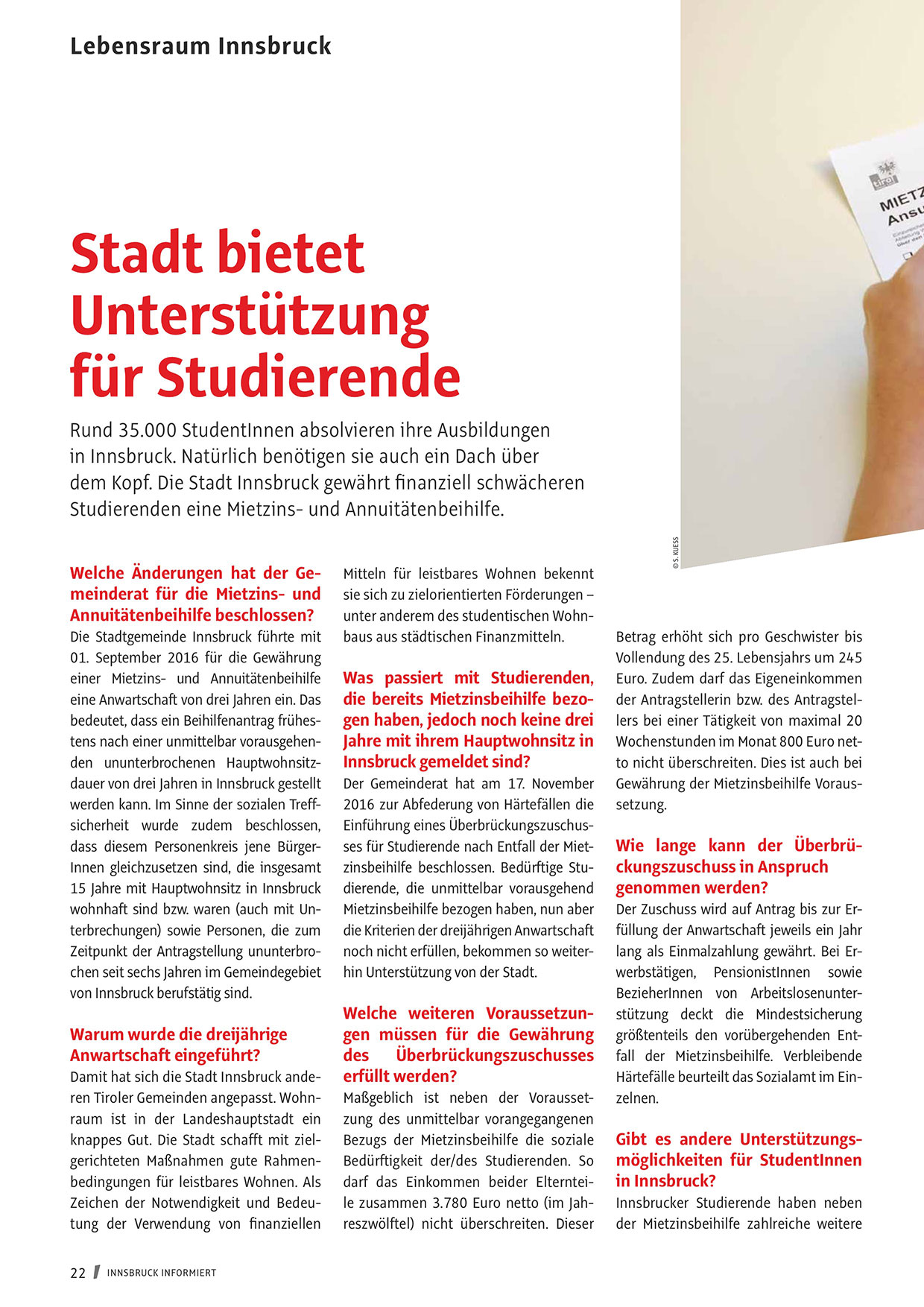 dem Kopf. Die Stadt Innsbruck gewährt finanziell schwächeren
