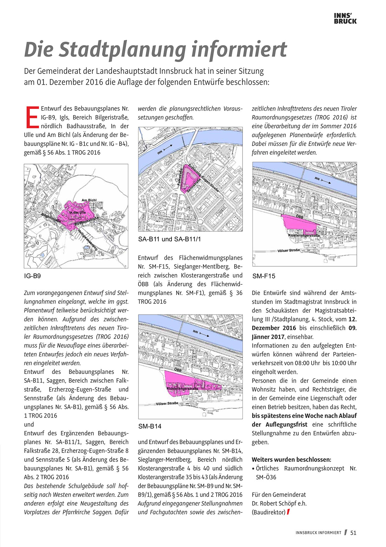 der Bebauungspläne Nr. SM-B9 und Nr. SMB9/1), gemäß § 56 Abs. 1 und 2 TROG 2016