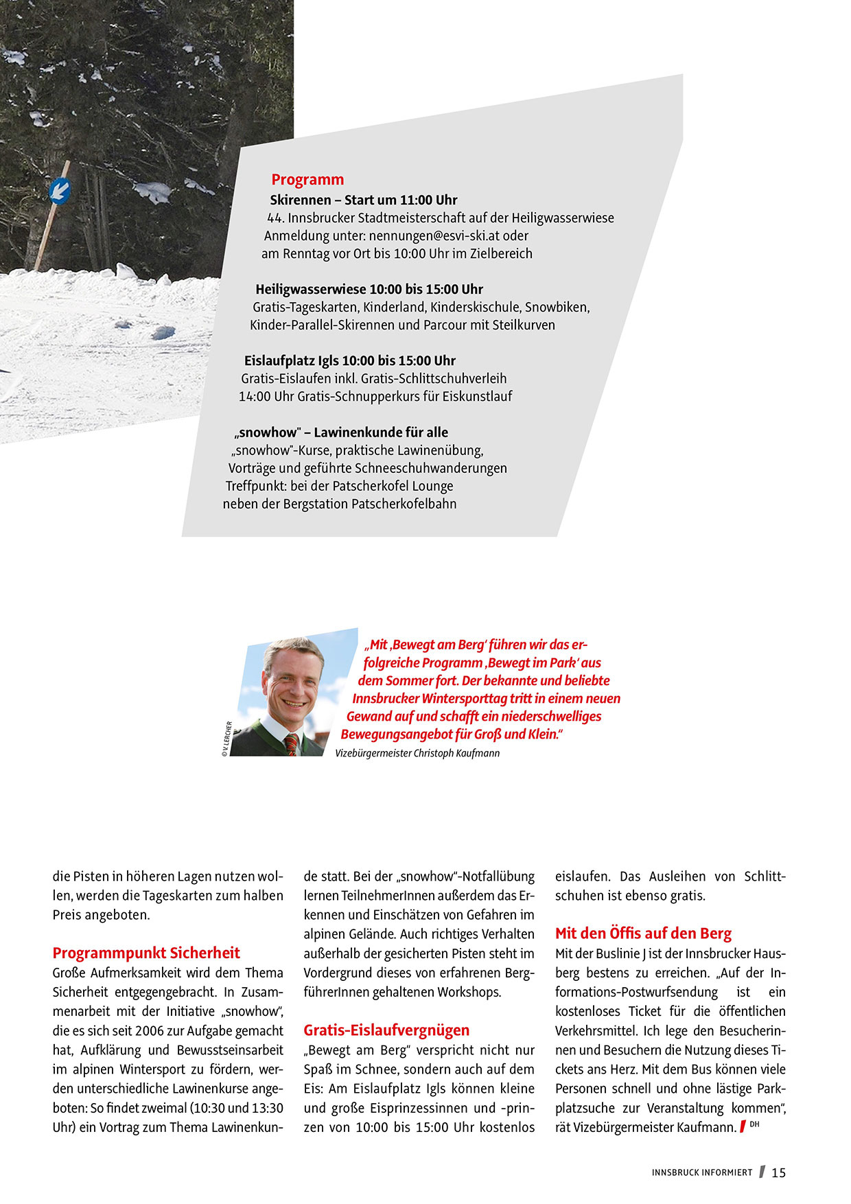 Sicherheit entgegengebracht. In Zusammenarbeit mit der Initiative „snowhow“,
