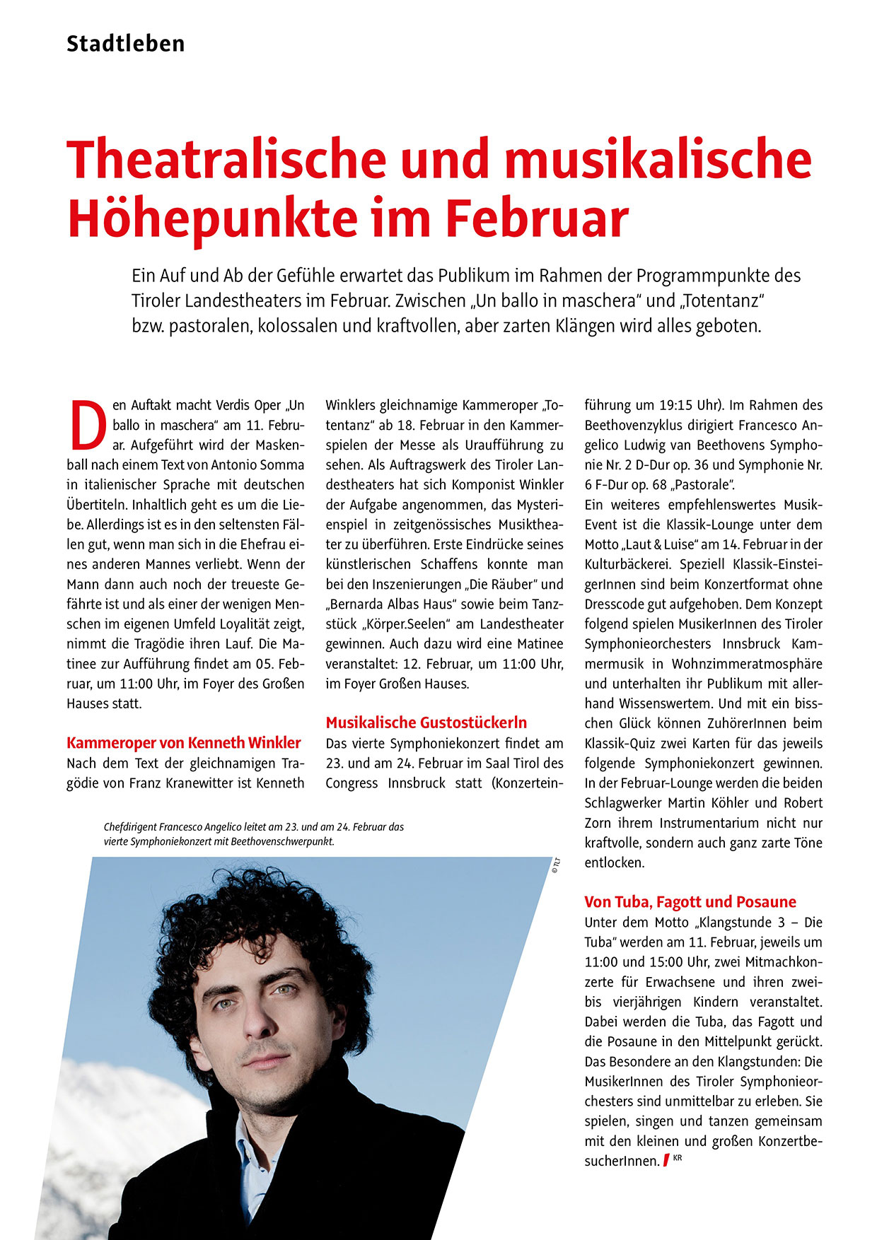 Tiroler Landestheaters im Februar. Zwischen „Un ballo in maschera“ und „Totentanz“