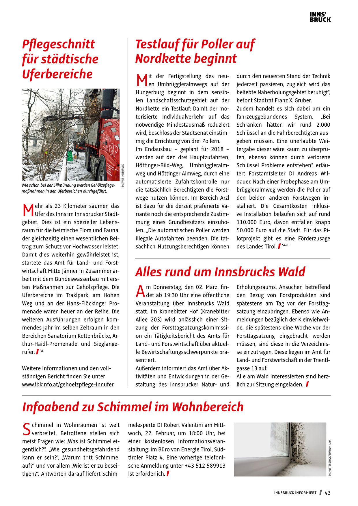 Außerdem informiert das Amt über Aktivitäten und Entwicklungen in der Gestaltung des Innsbrucker Natur- und