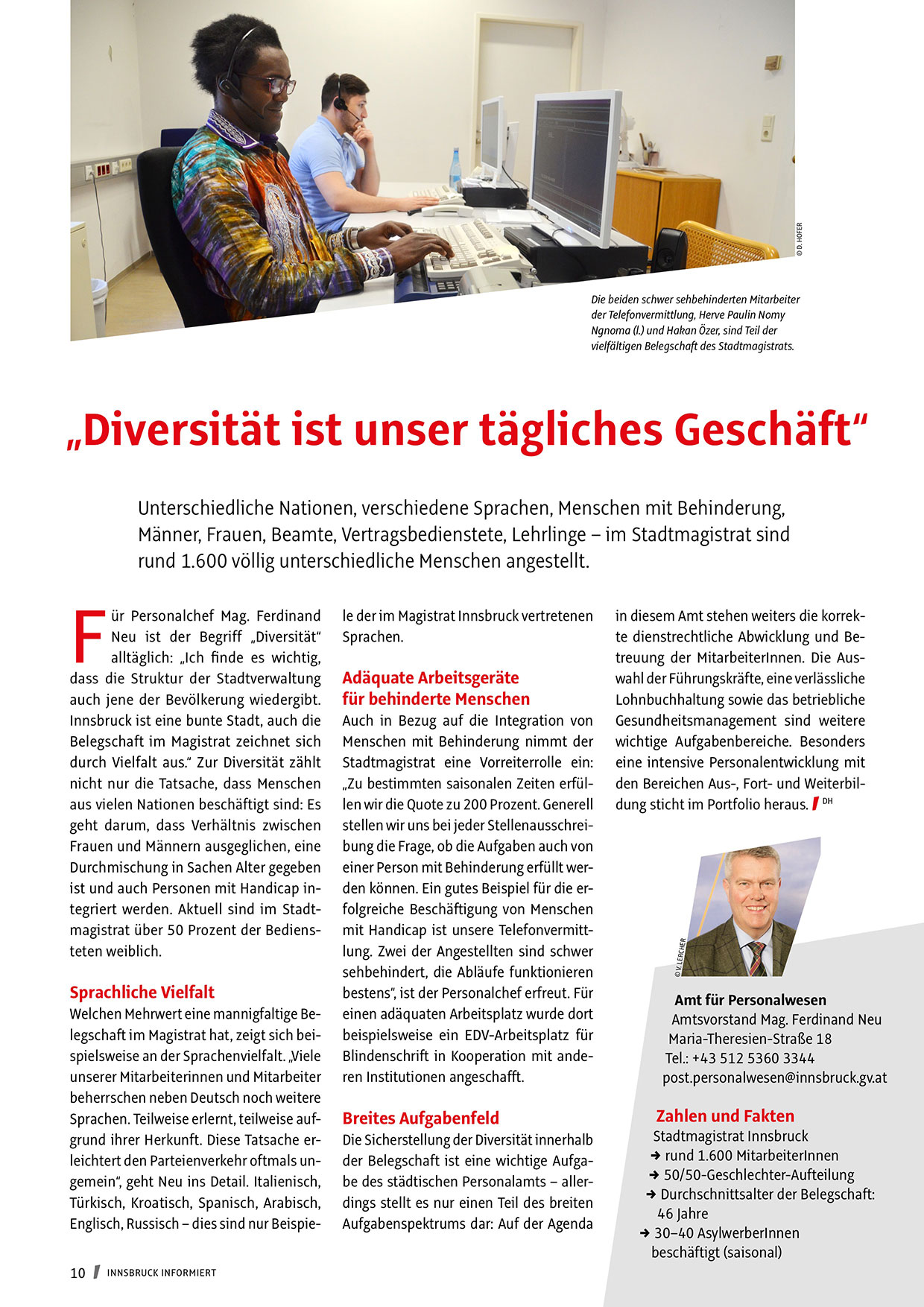 ist und auch Personen mit Handicap integriert werden. Aktuell sind im Stadtmagistrat über 50 Prozent der Bediensteten weiblich.