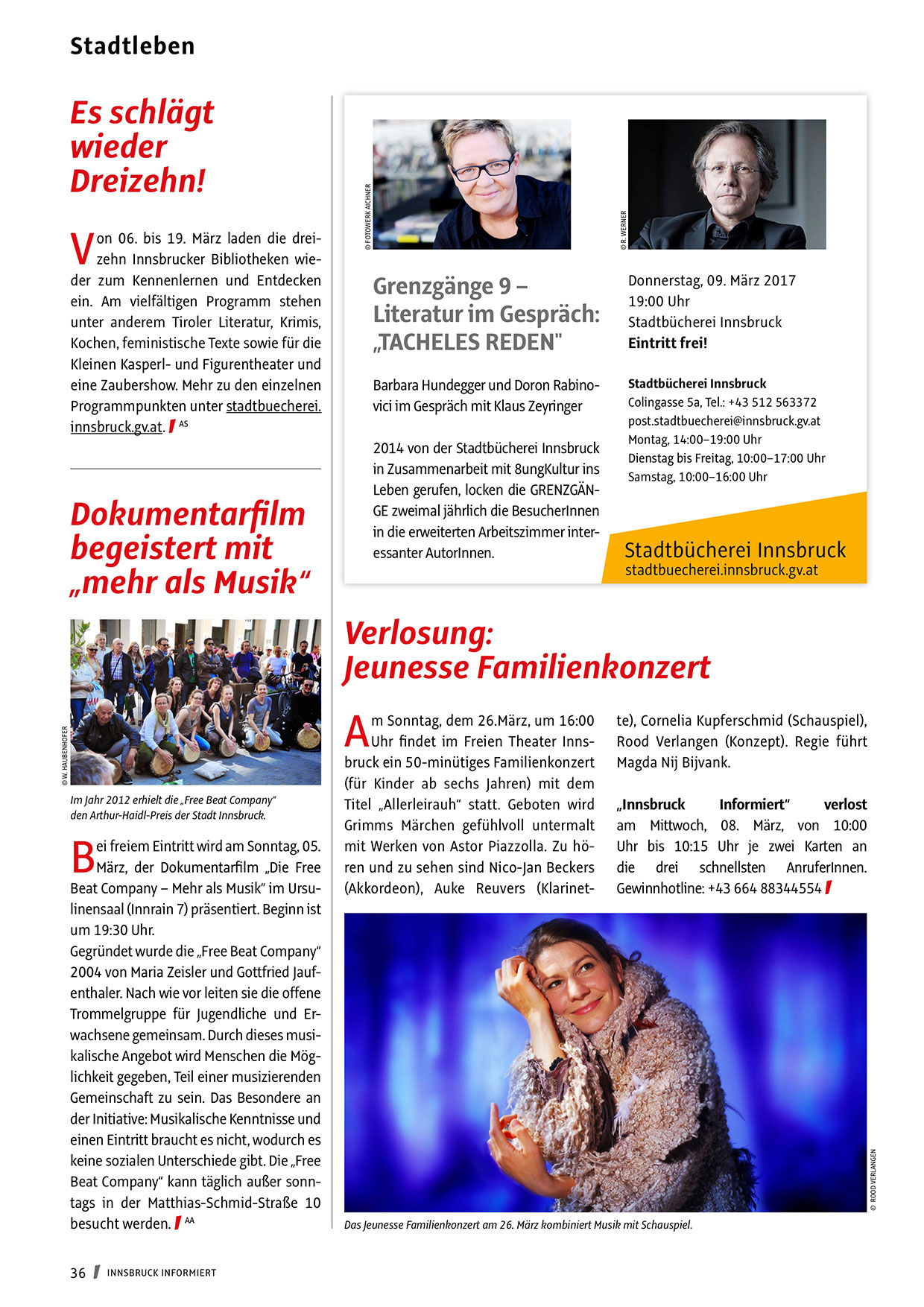 on 06. bis 19. März laden die dreizehn Innsbrucker Bibliotheken wieder zum Kennenlernen und Entdecken