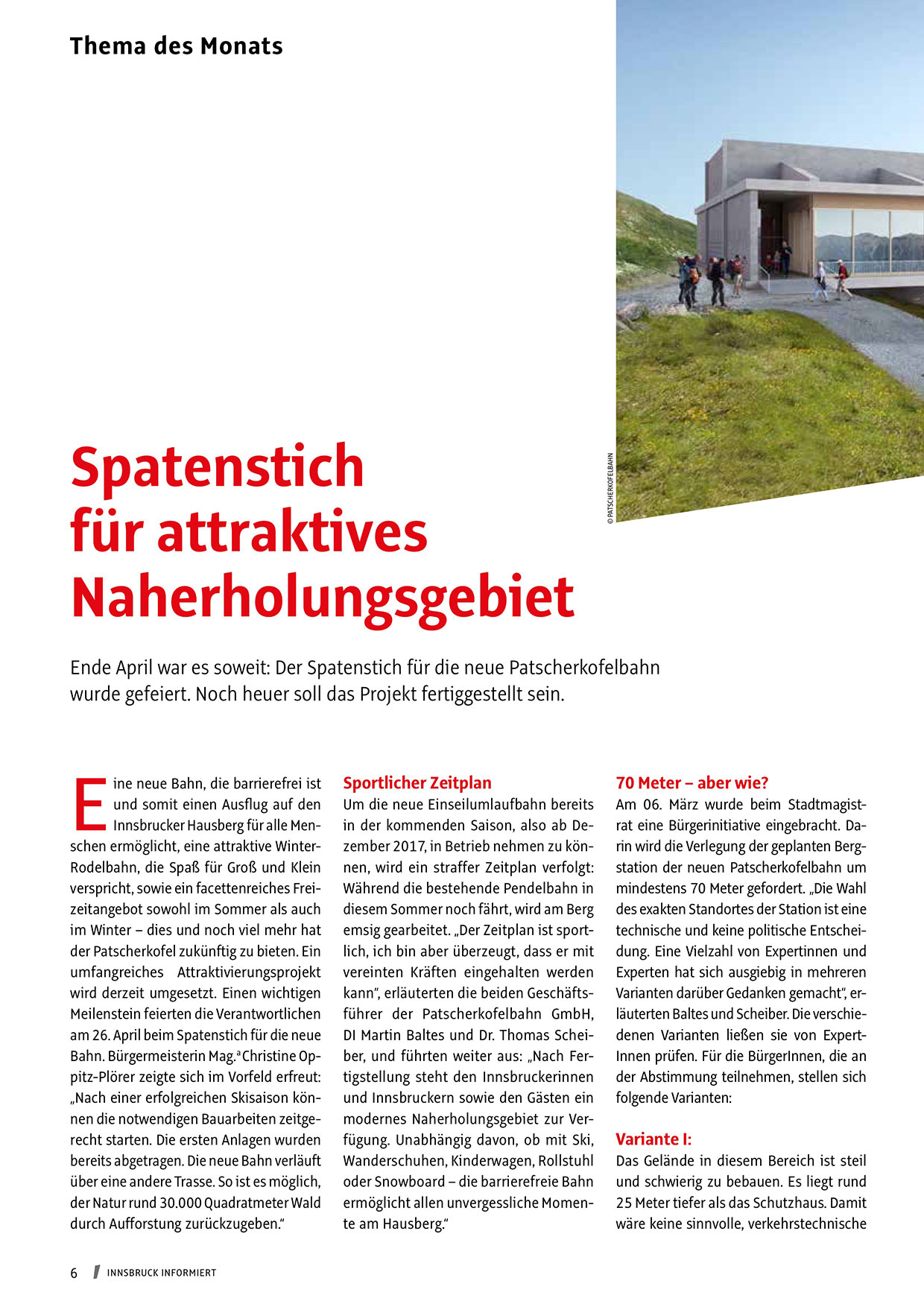 DI Martin Baltes und Dr. Thomas Scheiber, und führten weiter aus: „Nach Fertigstellung steht den Innsbruckerinnen