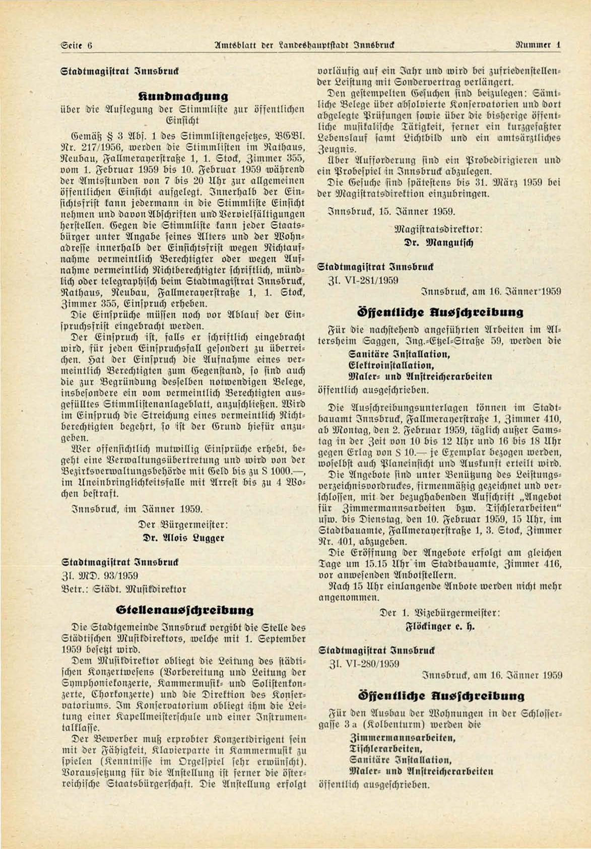 lich oder telegraphisch beim Stadtmagistrat Innsbruck,
