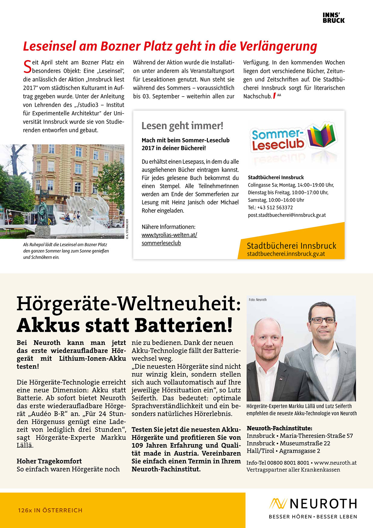 liegen dort verschiedene Bücher, Zeitungen und Zeitschriften auf. Die Stadtbücherei Innsbruck sorgt für literarischen