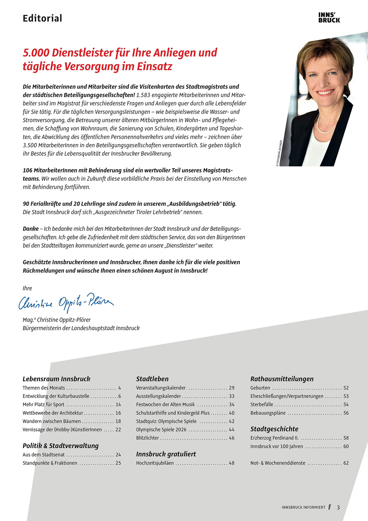 Rückmeldungen und wünsche Ihnen einen schönen August in Innsbruck!
