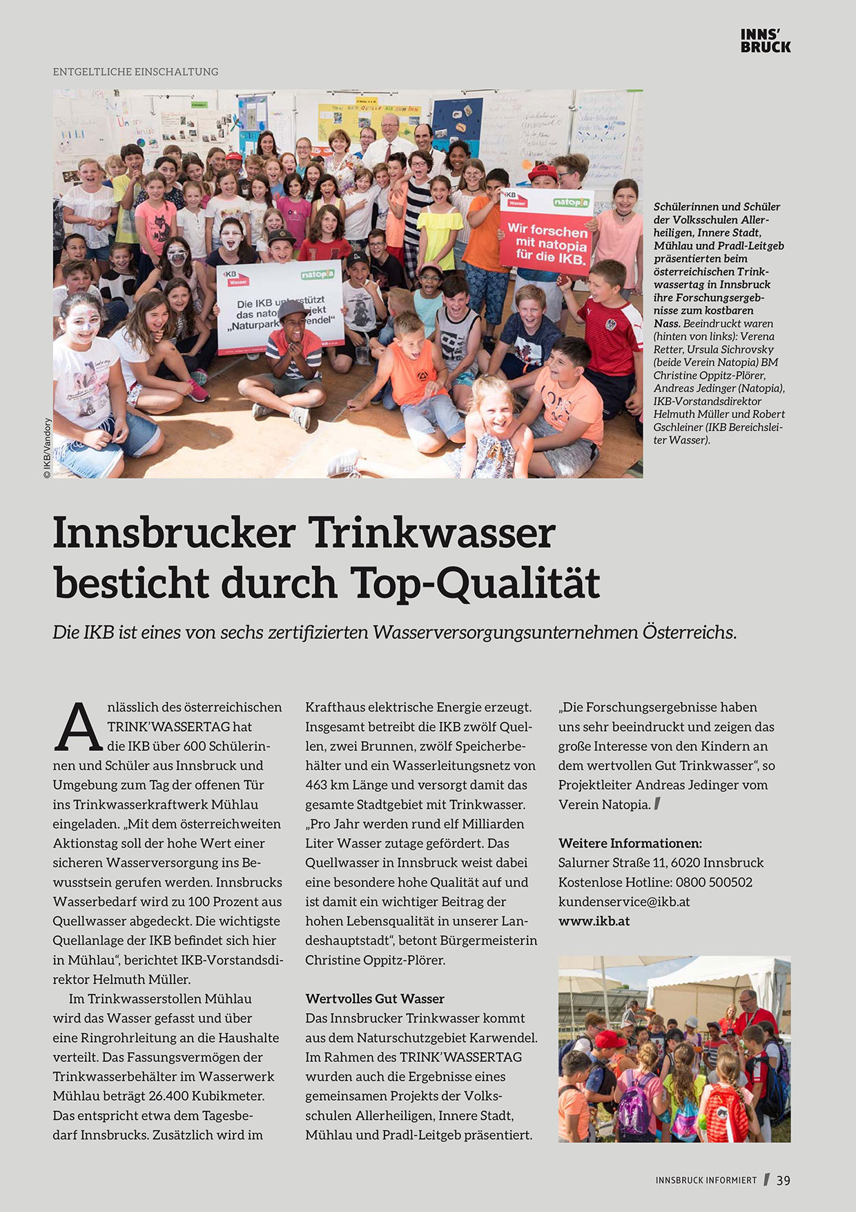 sicheren Wasserversorgung ins Bewusstsein gerufen werden. Innsbrucks