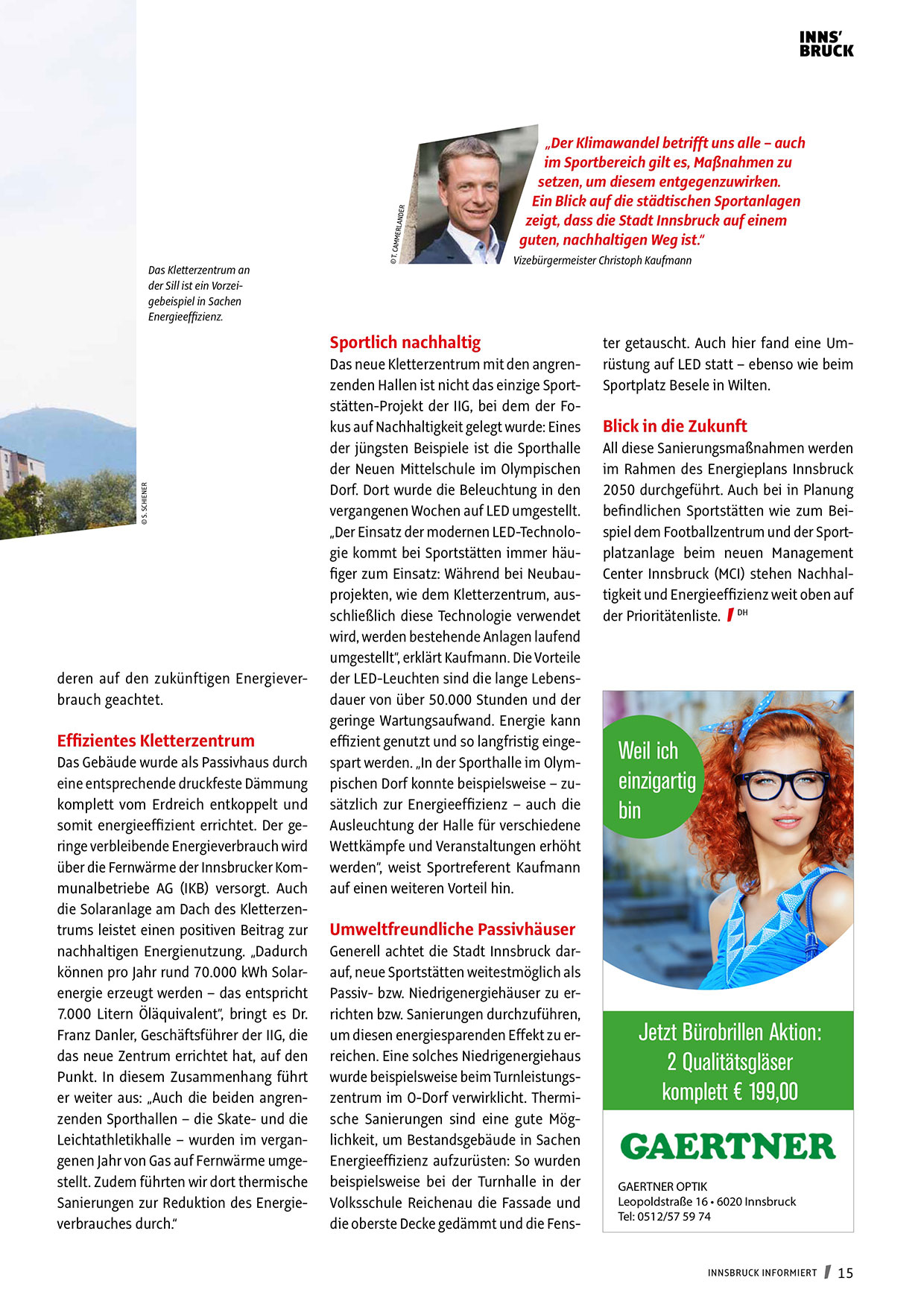 Generell achtet die Stadt Innsbruck darauf, neue Sportstätten weitestmöglich als