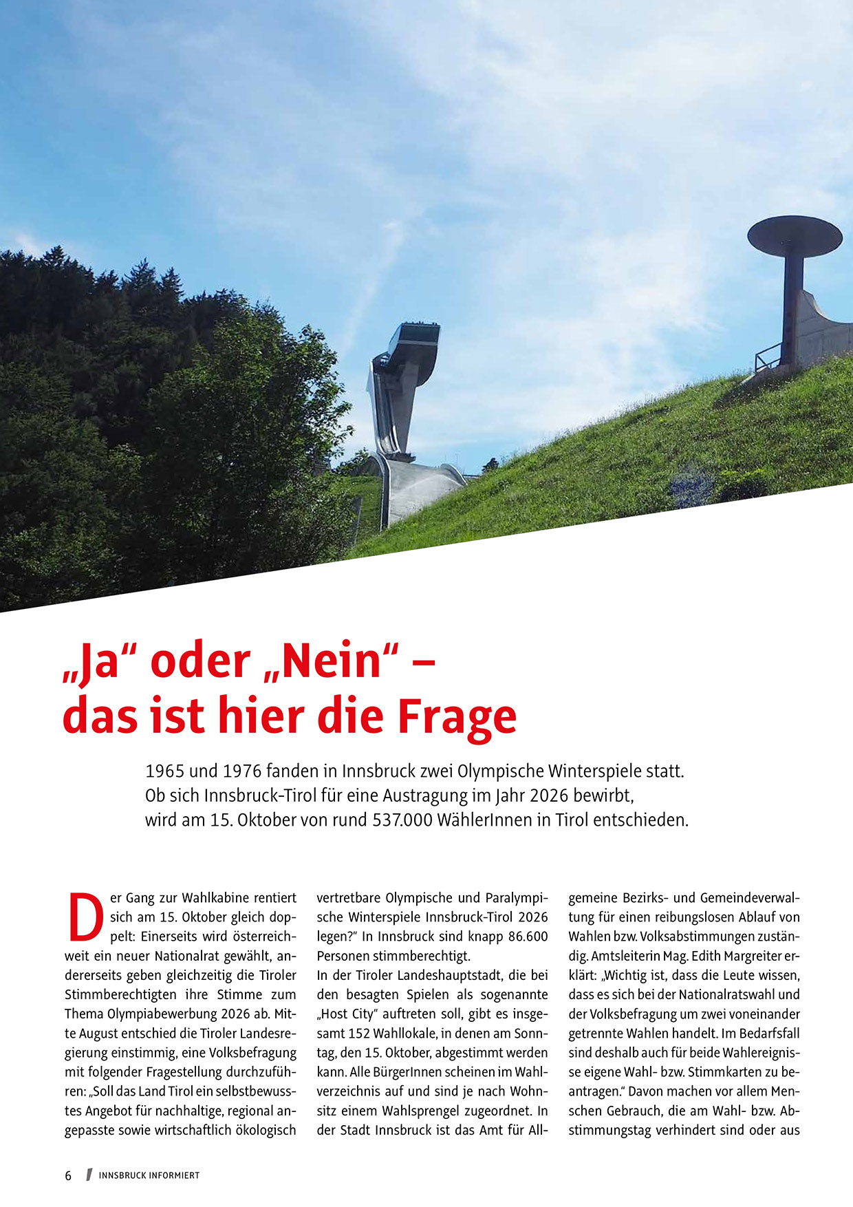 Thema Olympiabewerbung 2026 ab. Mitte August entschied die Tiroler Landesregierung einstimmig, eine Volksbefragung