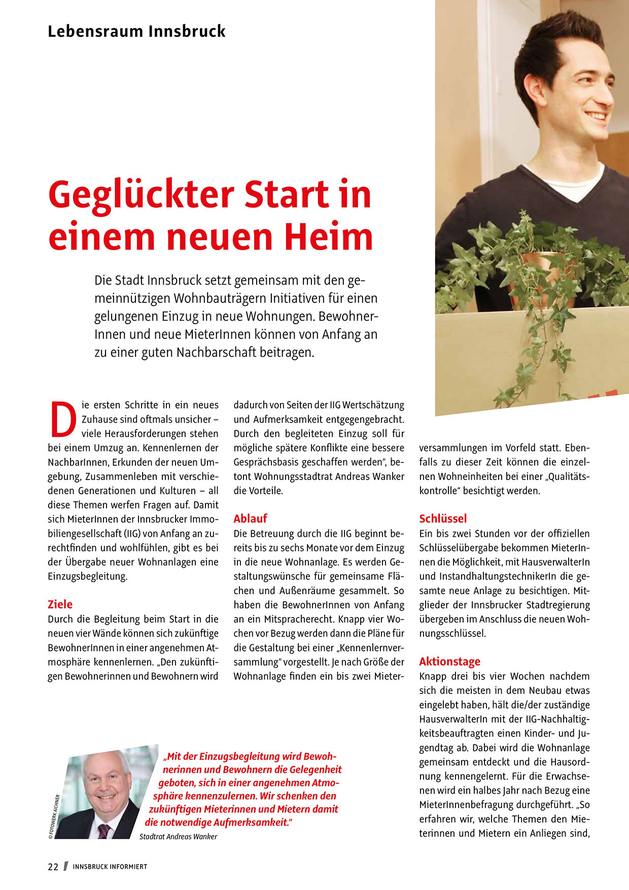sich MieterInnen der Innsbrucker Immobiliengesellschaft (IIG) von Anfang an zurechtfinden und wohlfühlen, gibt es bei
