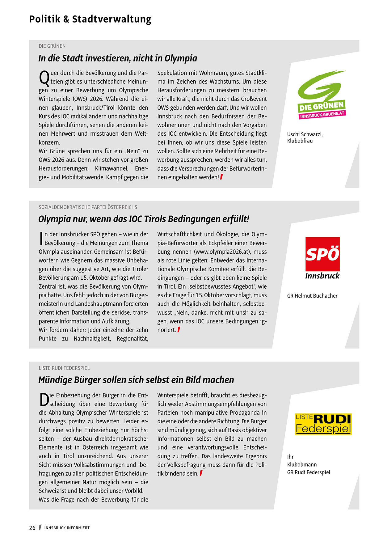 Olympia auseinander. Gemeinsam ist Befürwortern wie Gegnern das massive Unbehagen über die suggestive Art, wie die Tiroler