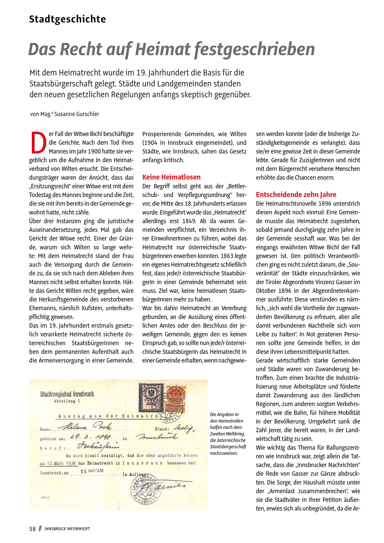 Das im 19. Jahrhundert erstmals gesetzlich verankerte Heimatrecht sicherte österreichischen StaatsbürgerInnen neben dem permanenten Aufenthalt auch