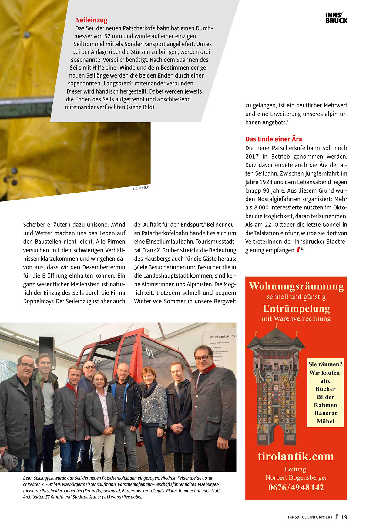 der Auftakt für den Endspurt.“ Bei der neuen Patscherkofelbahn handelt es sich um