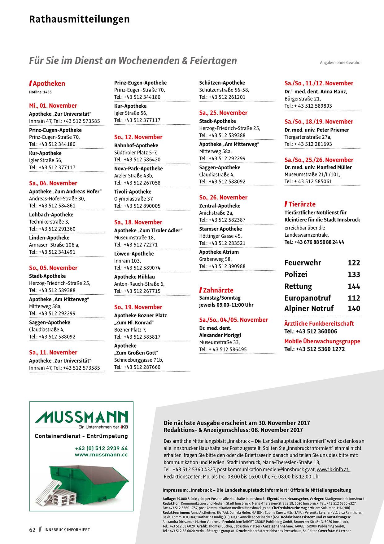 Impressum: „Innsbruck – Die Landeshauptstadt informiert“ Offizielle Mitteilungszeitung