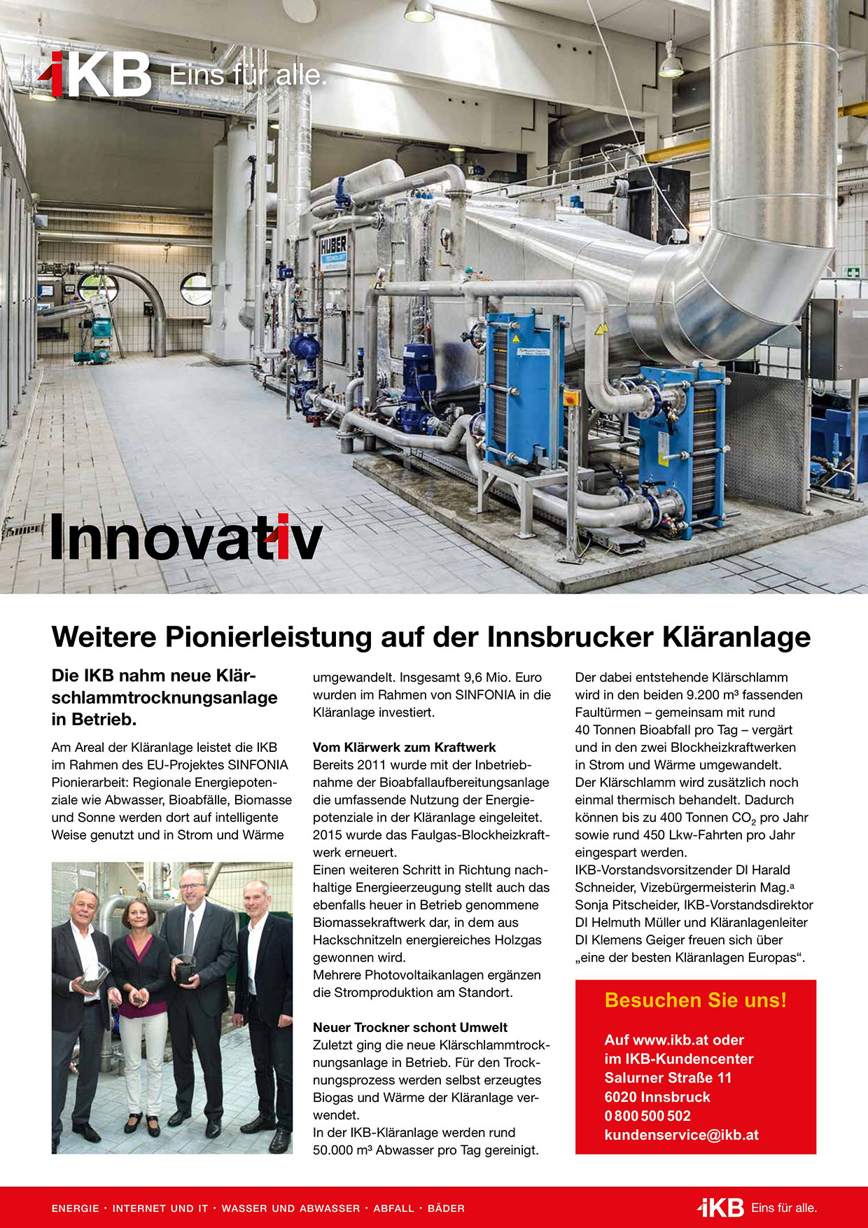 Weitere Pionierleistung auf der Innsbrucker Kläranlage