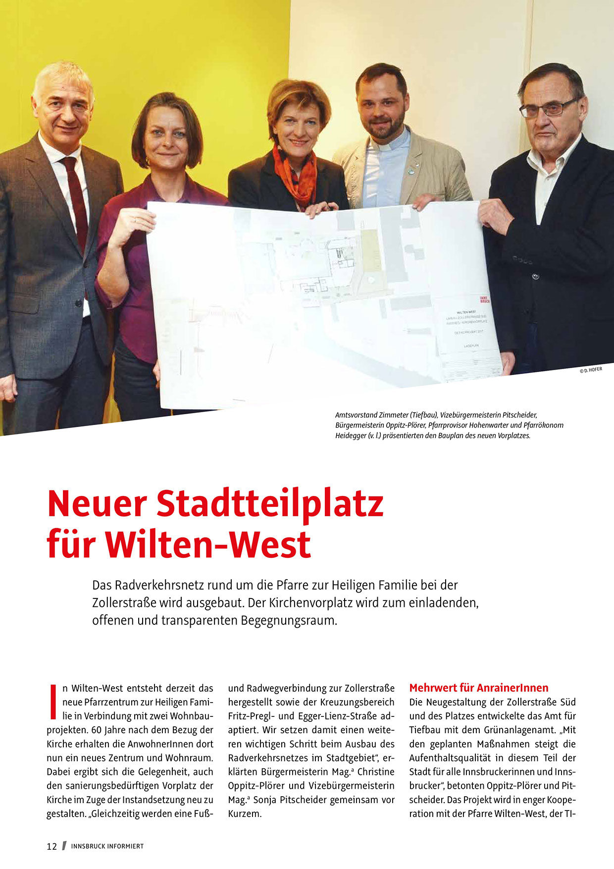 Stadt für alle Innsbruckerinnen und Innsbrucker“, betonten Oppitz-Plörer und Pitscheider. Das Projekt wird in enger Kooperation mit der Pfarre Wilten-West, der TI-