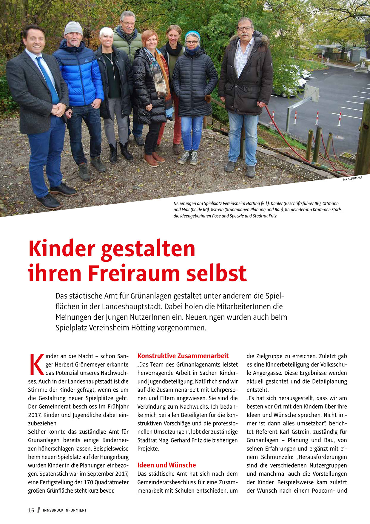 und Mair (beide IIG), Gstrein (Grünanlagen Planung und Bau), Gemeinderätin Krammer-Stark,