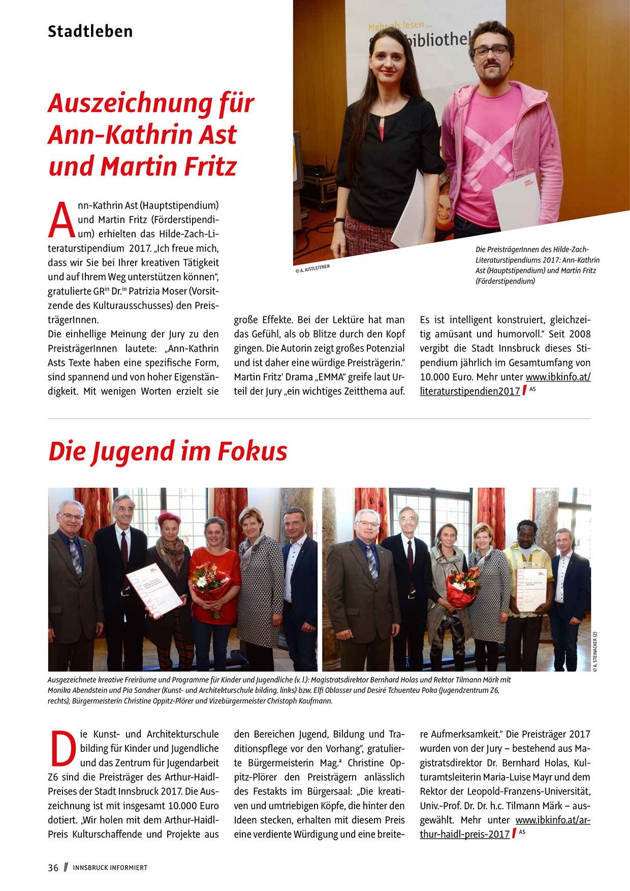 Z6 sind die Preisträger des Arthur-HaidlPreises der Stadt Innsbruck 2017. Die Auszeichnung ist mit insgesamt 10.000 Euro