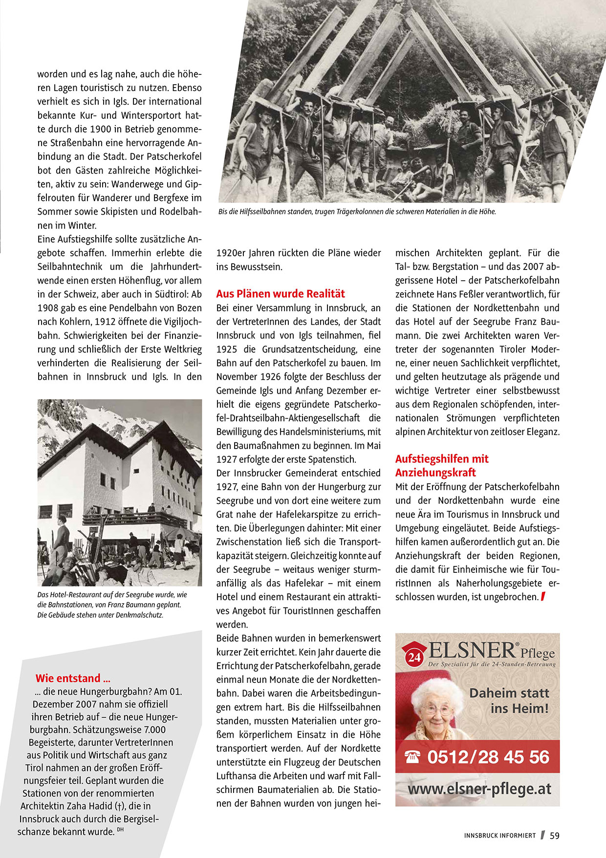 einmal neun Monate die der Nordkettenbahn. Dabei waren die Arbeitsbedingungen extrem hart. Bis die Hilfsseilbahnen