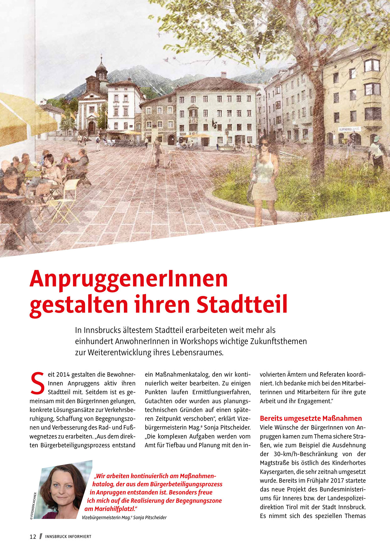 konkrete Lösungsansätze zur Verkehrsberuhigung, Schaffung von Begegnungszonen und Verbesserung des Rad- und Fußwegnetzes zu erarbeiten. „Aus dem direkten Bürgerbeteiligungsprozess entstand