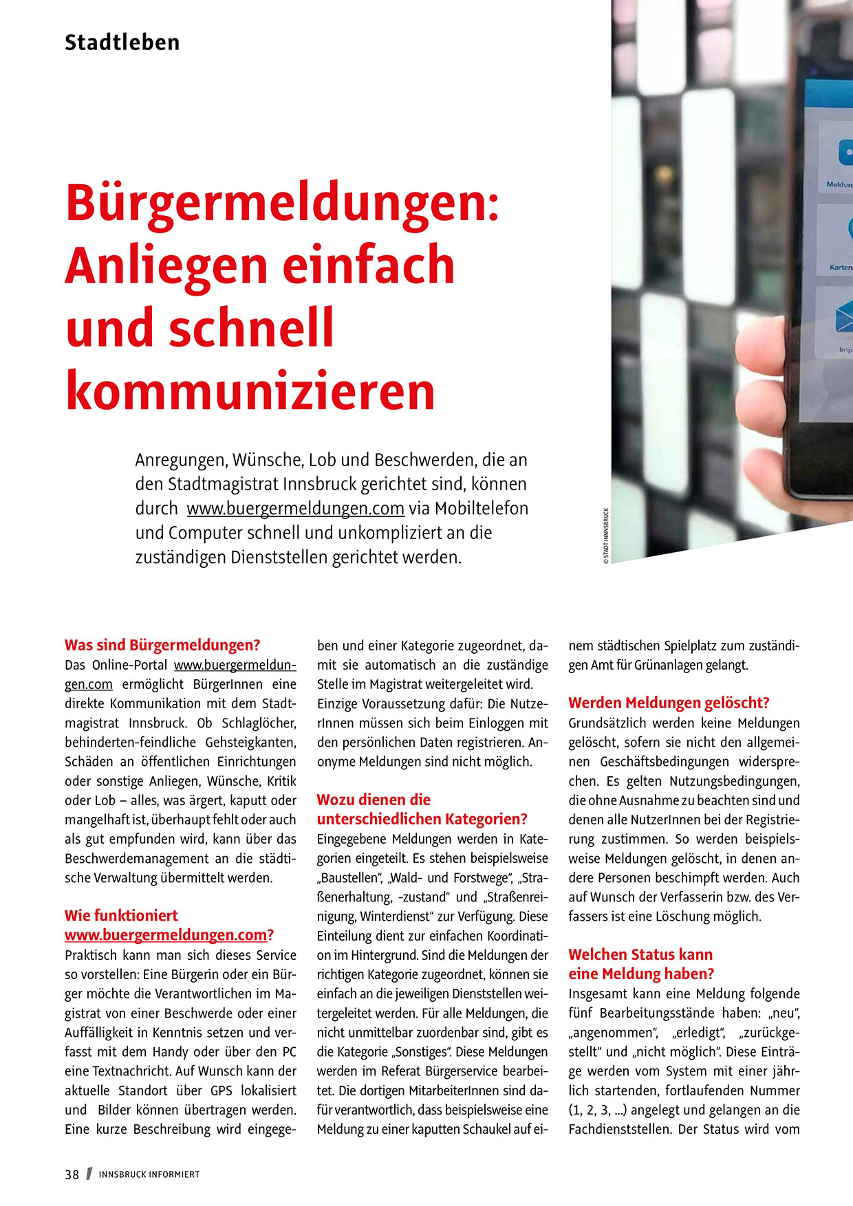 direkte Kommunikation mit dem Stadtmagistrat Innsbruck. Ob Schlaglöcher,