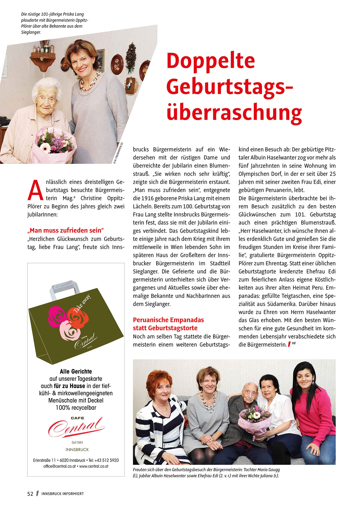 nlässlich eines dreistelligen Geburtstags besuchte Bürgermeisterin Mag.a Christine OppitzPlörer zu Beginn des Jahres gleich zwei