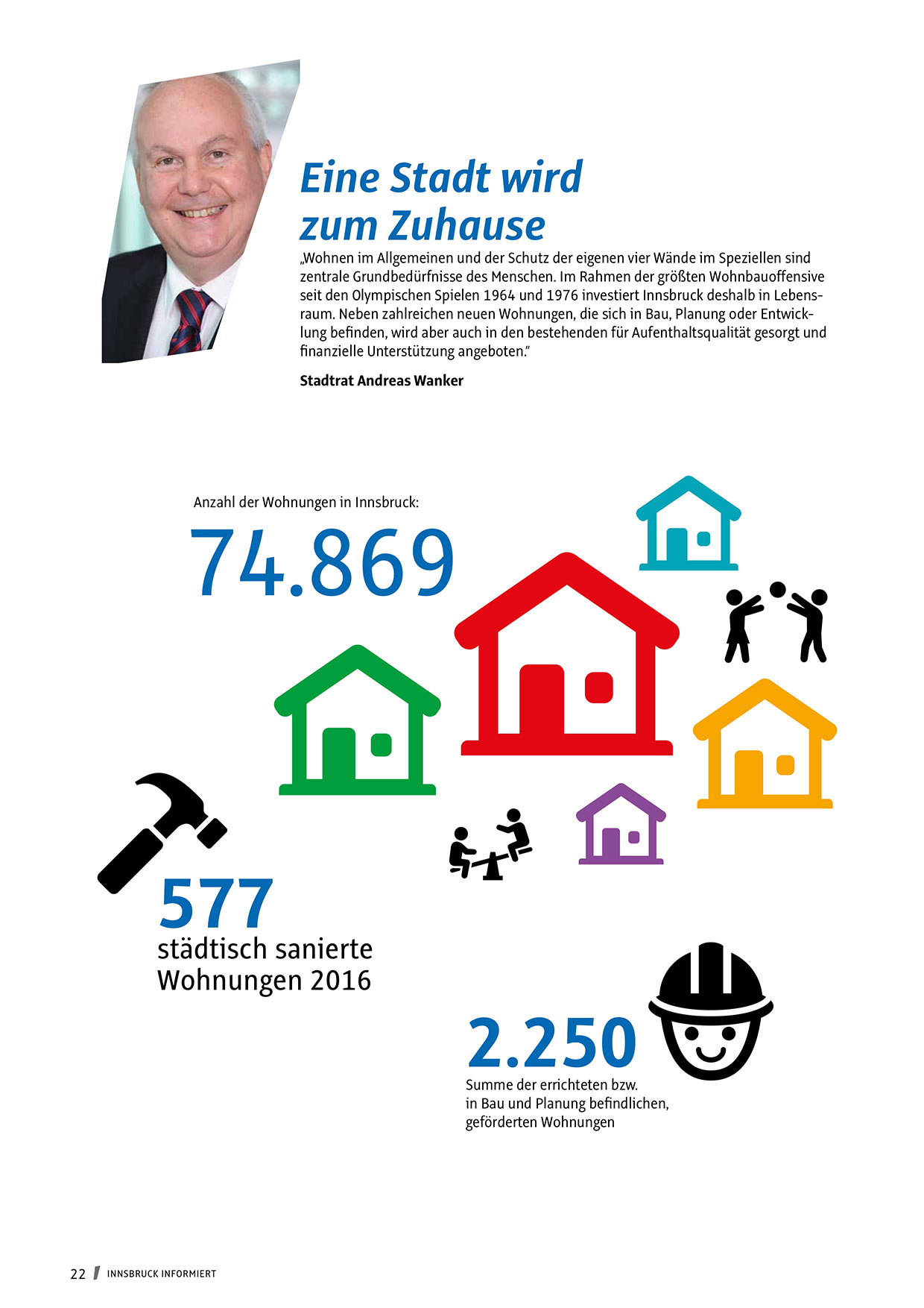 seit den Olympischen Spielen 1964 und 1976 investiert Innsbruck deshalb in Lebensraum. Neben zahlreichen neuen Wohnungen, die sich in Bau, Planung oder Entwicklung befinden, wird aber auch in den bestehenden für Aufenthaltsqualität gesorgt und