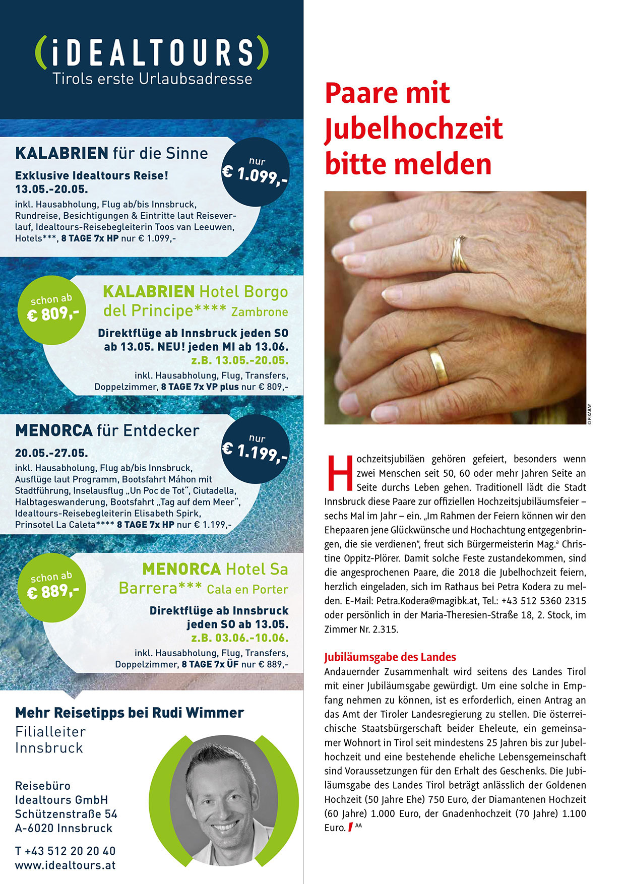 herzlich eingeladen, sich im Rathaus bei Petra Kodera zu melden. E-Mail: Petra.Kodera@magibk.at, Tel.: +43 512 5360 2315