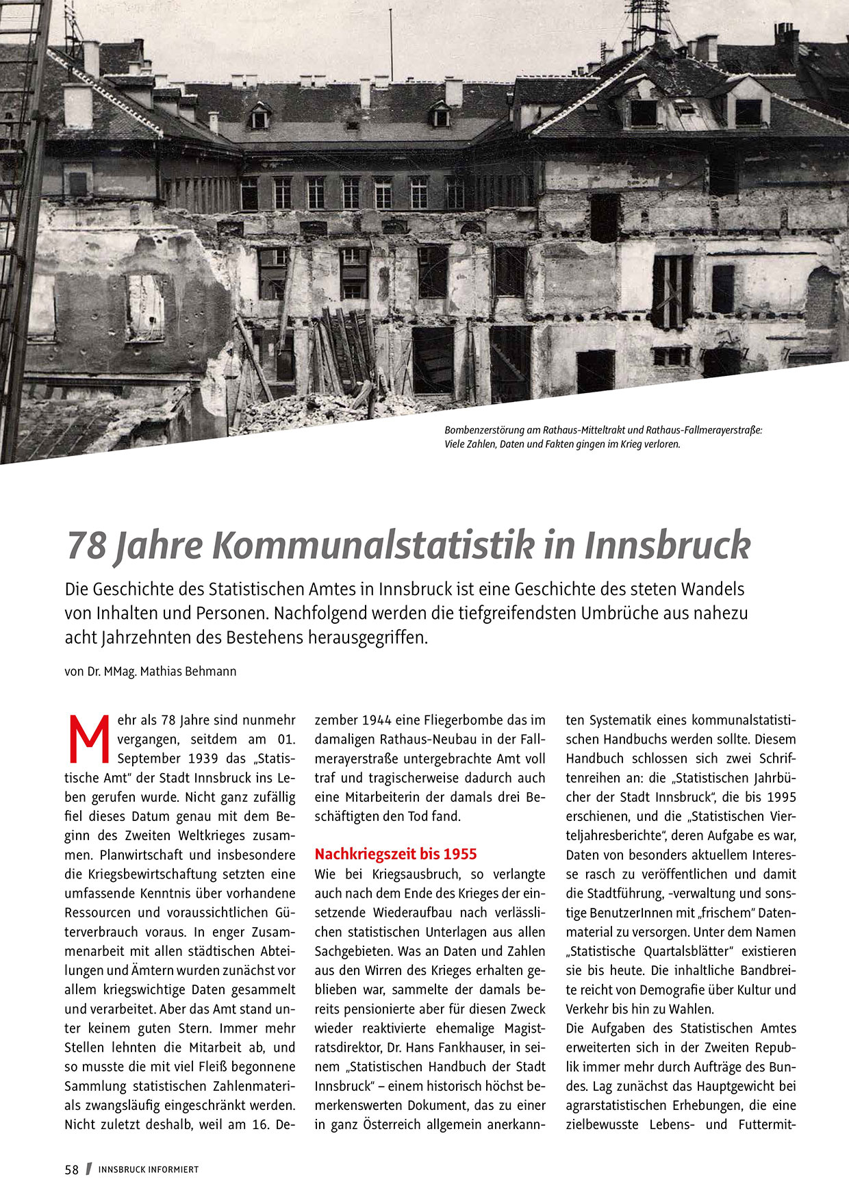 September 1939 das „Statistische Amt“ der Stadt Innsbruck ins Leben gerufen wurde. Nicht ganz zufällig