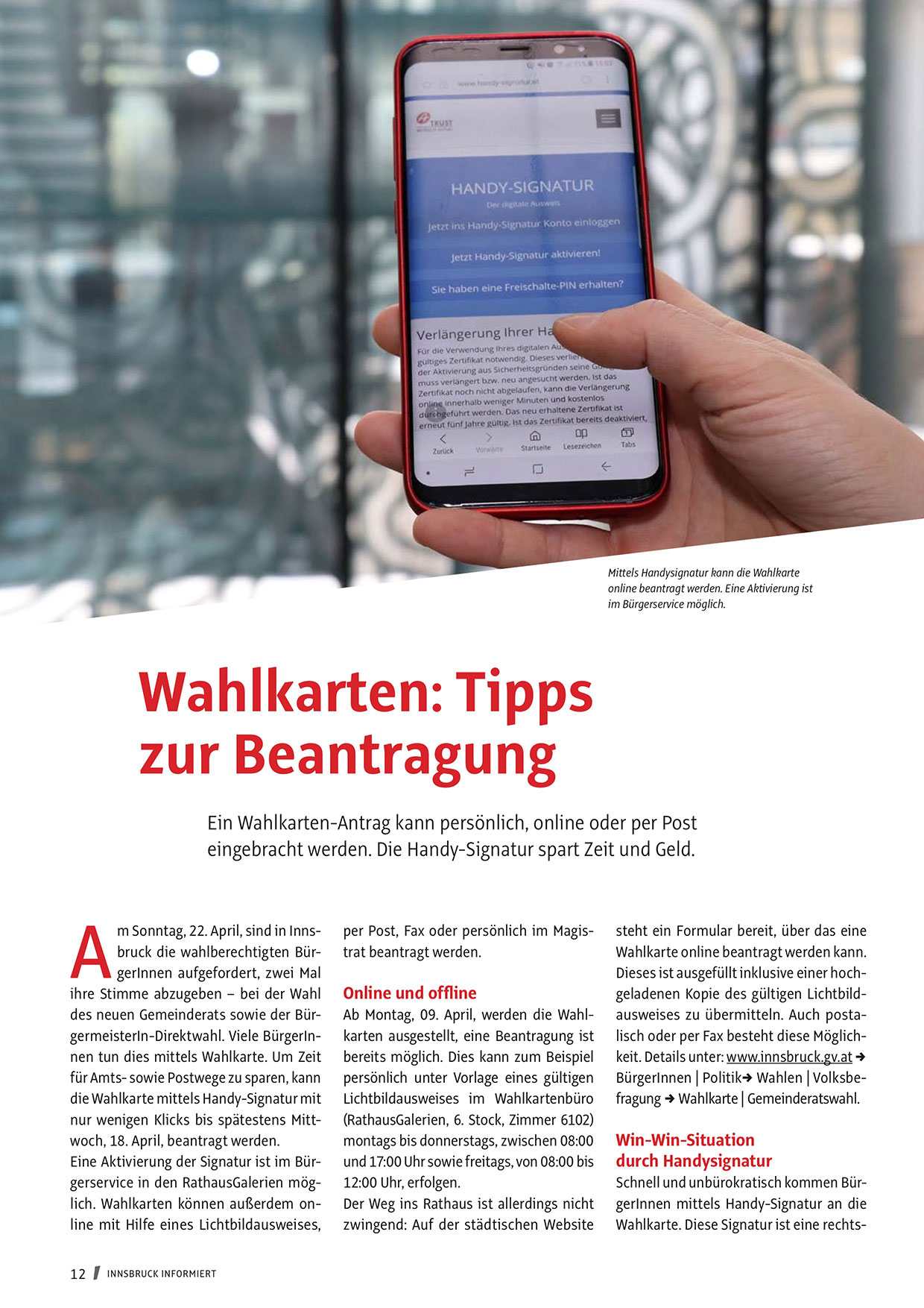 Dieses ist ausgefüllt inklusive einer hochgeladenen Kopie des gültigen Lichtbildausweises zu übermitteln. Auch postalisch oder per Fax besteht diese Möglichkeit. Details unter: www.innsbruck.gv.at ,