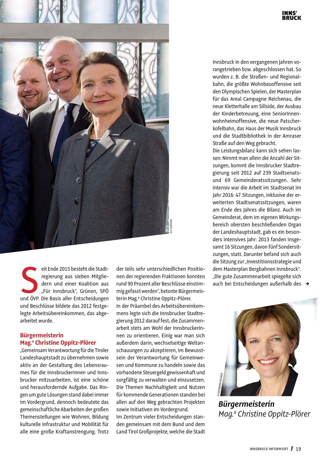 Die Leistungsbilanz kann sich sehen lassen: Nimmt man allein die Anzahl der Sitzungen, kommt die Innsbrucker Stadtregierung seit 2012 auf 239 Stadtsenatsund 69 Gemeinderatssitzungen. Sehr