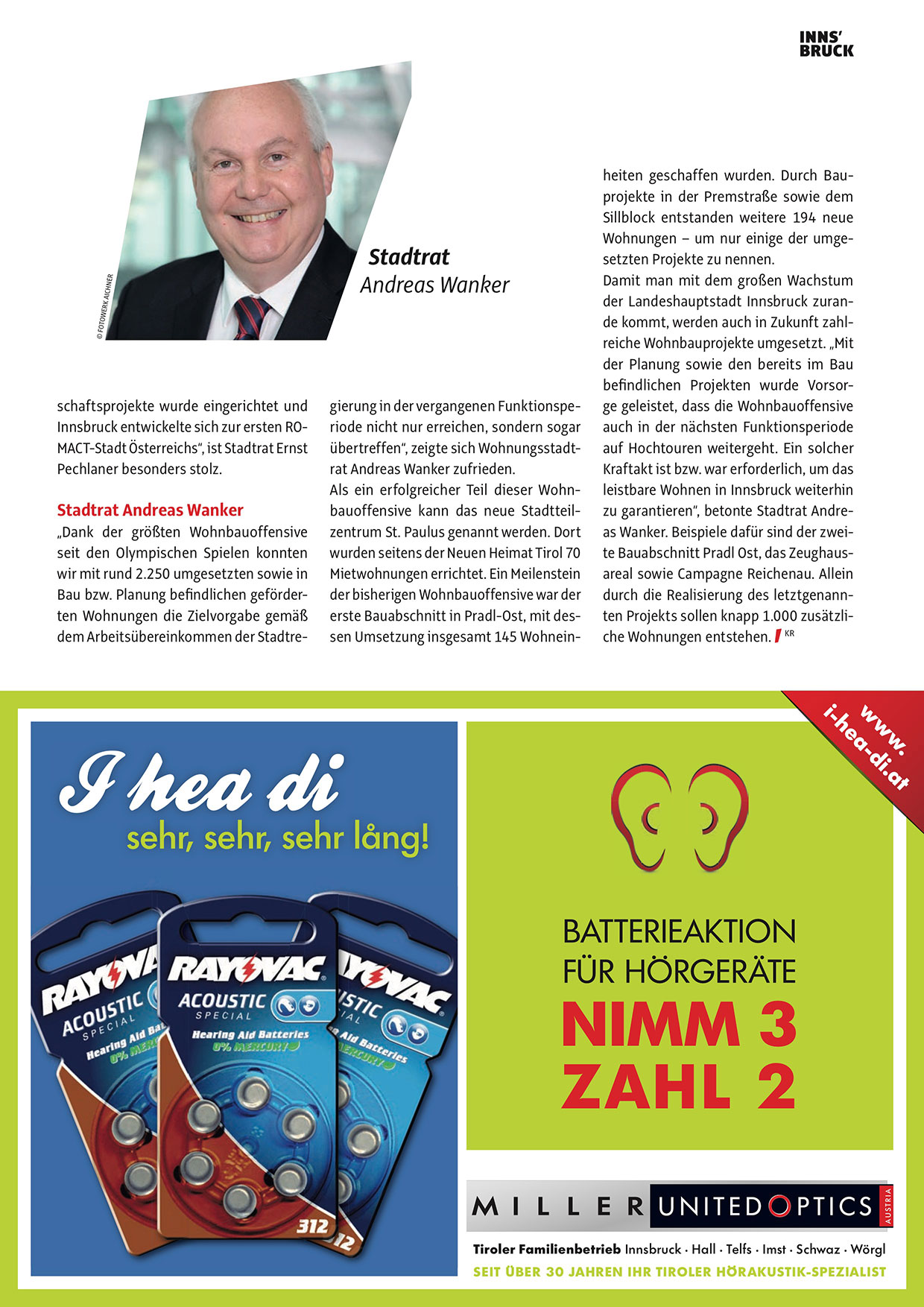 zu garantieren“, betonte Stadtrat Andreas Wanker. Beispiele dafür sind der zweite Bauabschnitt Pradl Ost, das Zeughausareal sowie Campagne Reichenau. Allein