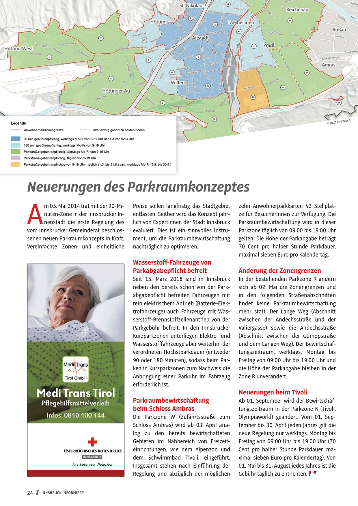 Parkgebühr befreit. In den Innsbrucker
