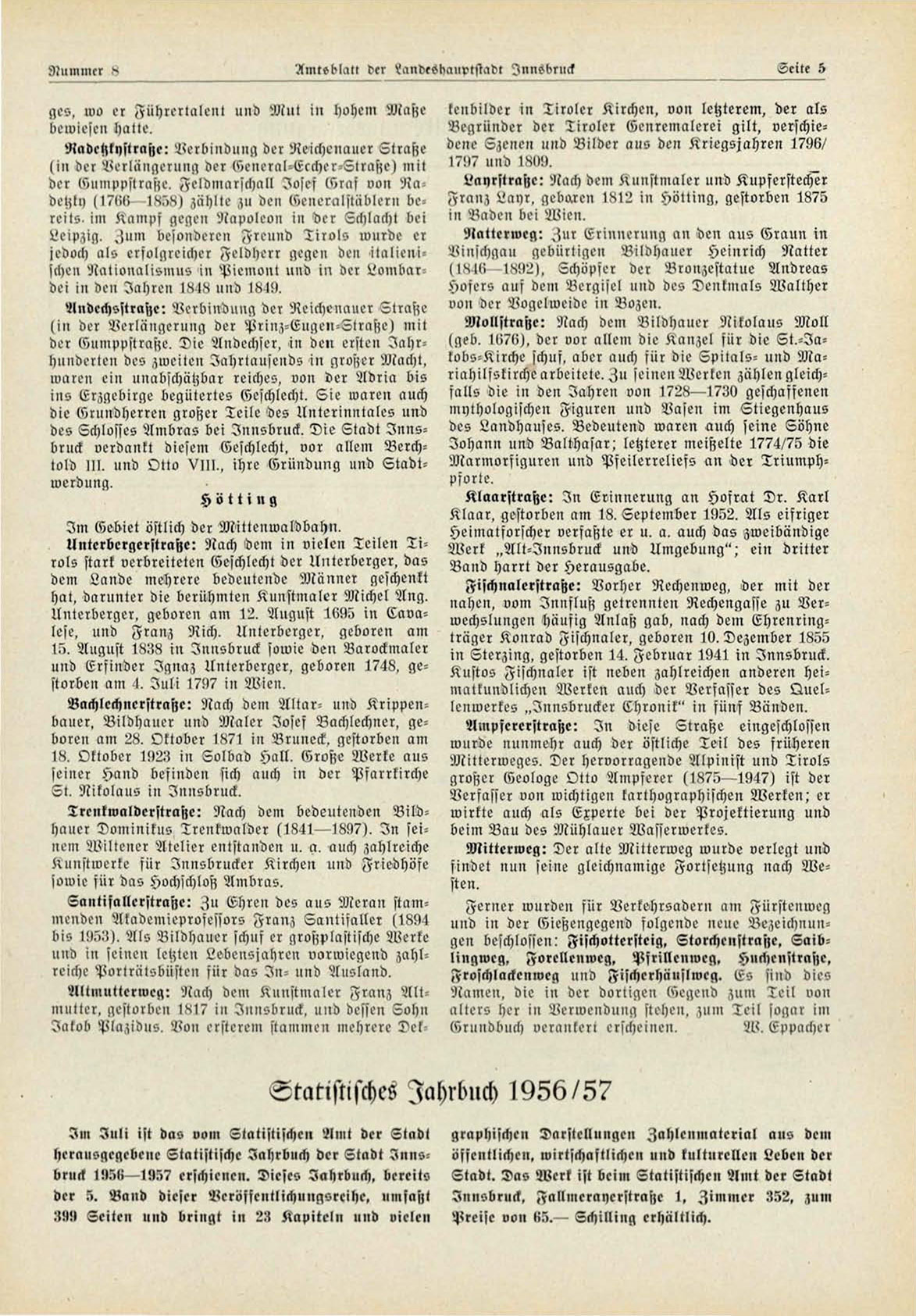herausgegebene Statistische Jahrbuch der Stadt I n n s bruck