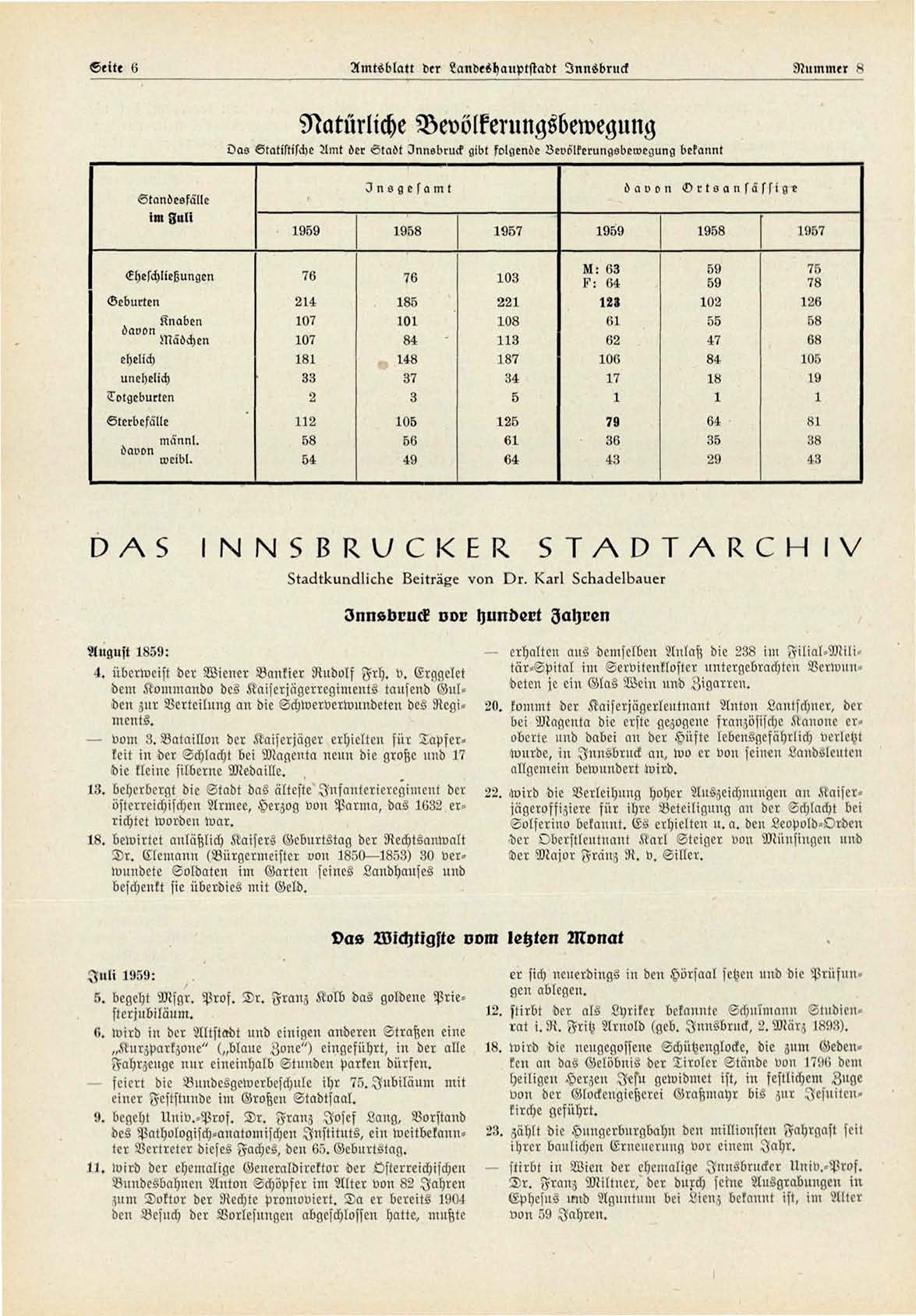 Oas Statistische Amt der Stadt ^nnsl"iuck c,iot folcirne Zevölkerungobcwe^ung bekannt
