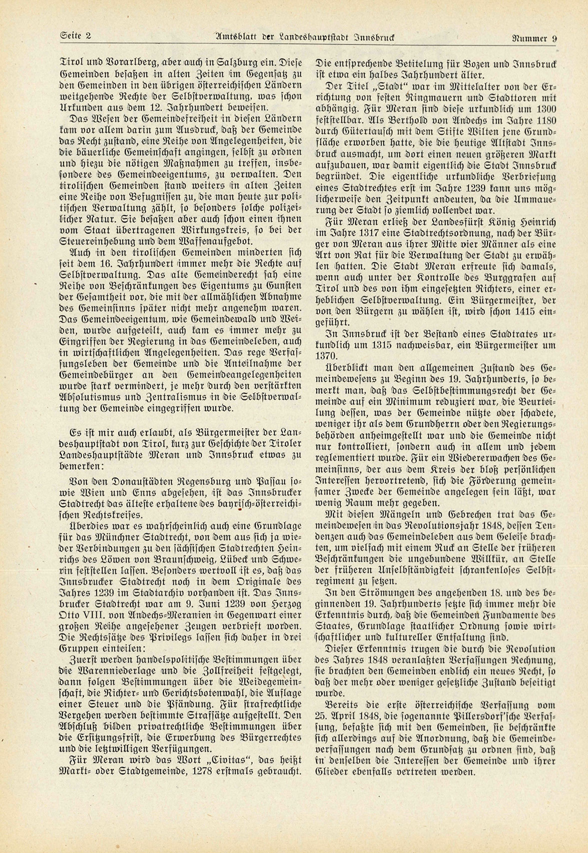 I n Innsbruck ist der Bestand eines Stadtrates urkundlich um 1315 nachweisbar, ein Bürgermeister um