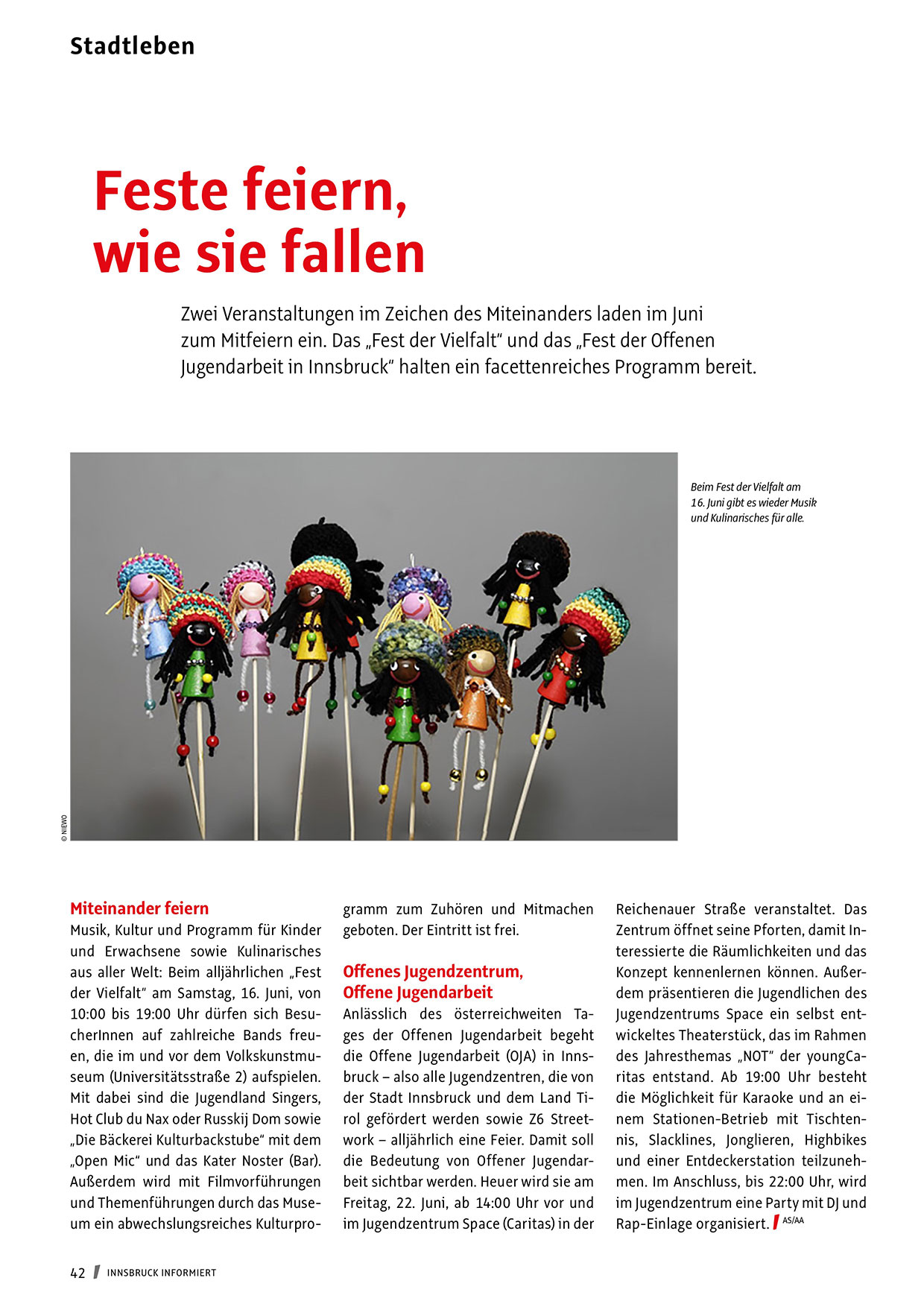 der Stadt Innsbruck und dem Land Tirol gefördert werden sowie Z6 Streetwork – alljährlich eine Feier. Damit soll