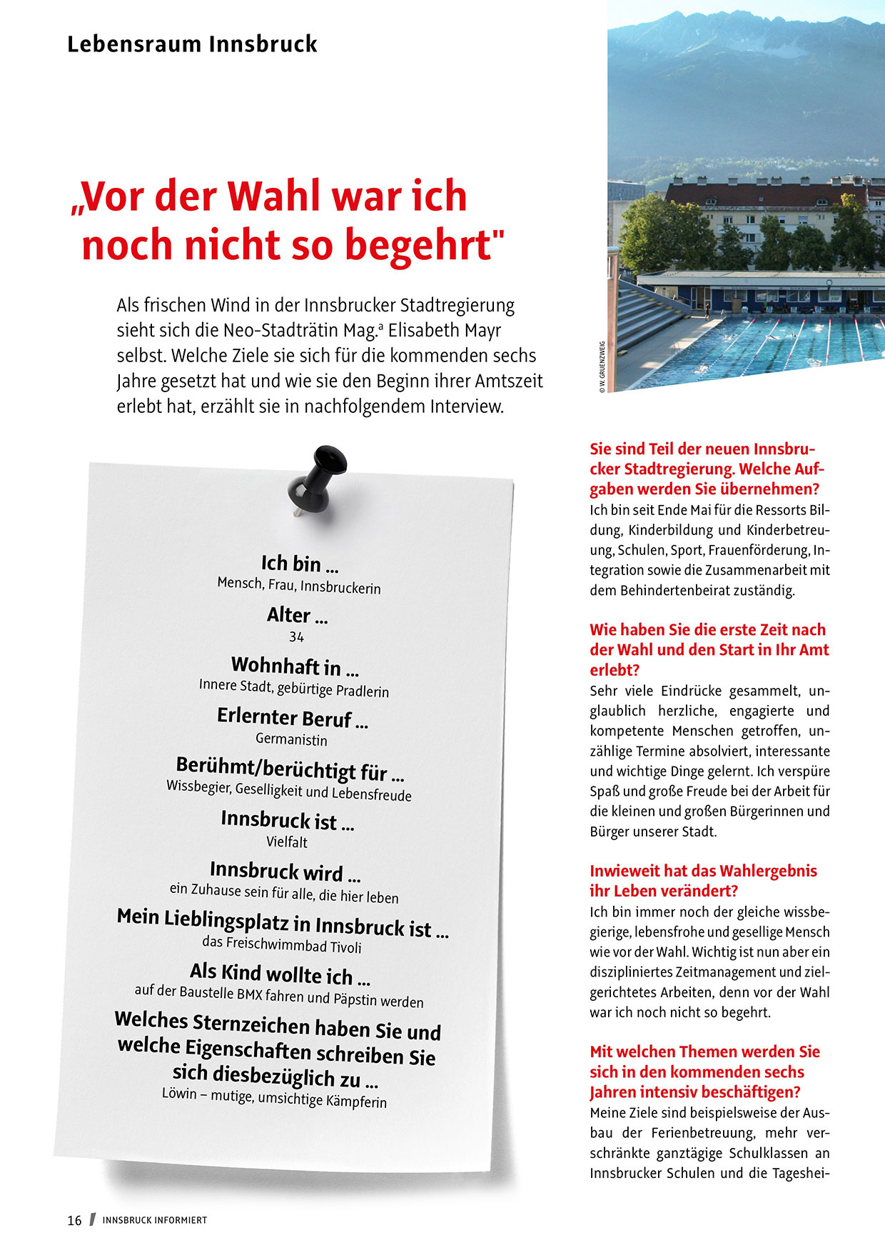 Ich bin seit Ende Mai für die Ressorts Bildung, Kinderbildung und Kinderbetreuung, Schulen, Sport, Frauenförderung, Integration sowie die Zusammenarbeit mit