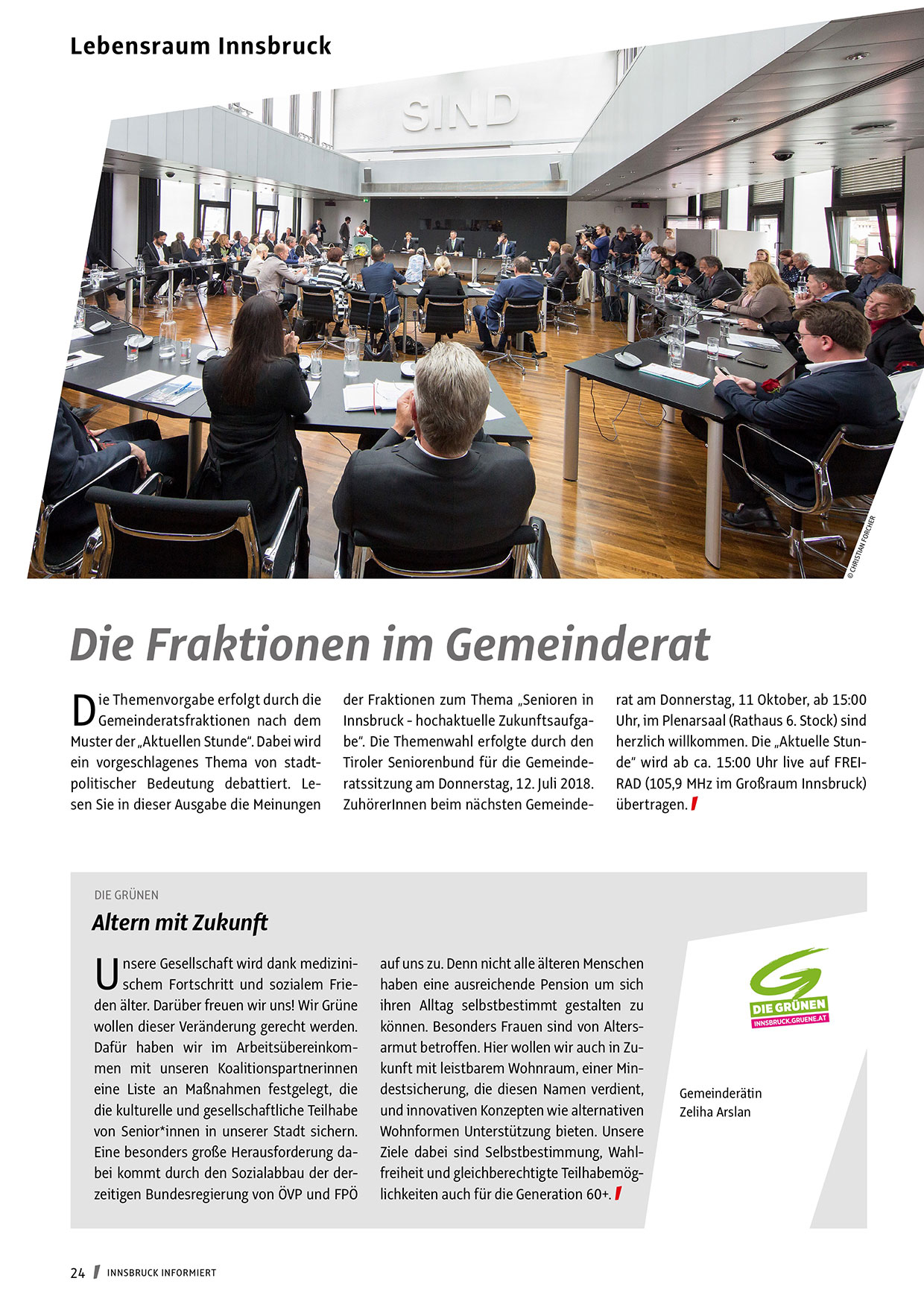 Tiroler Seniorenbund für die Gemeinderatssitzung am Donnerstag, 12. Juli 2018.