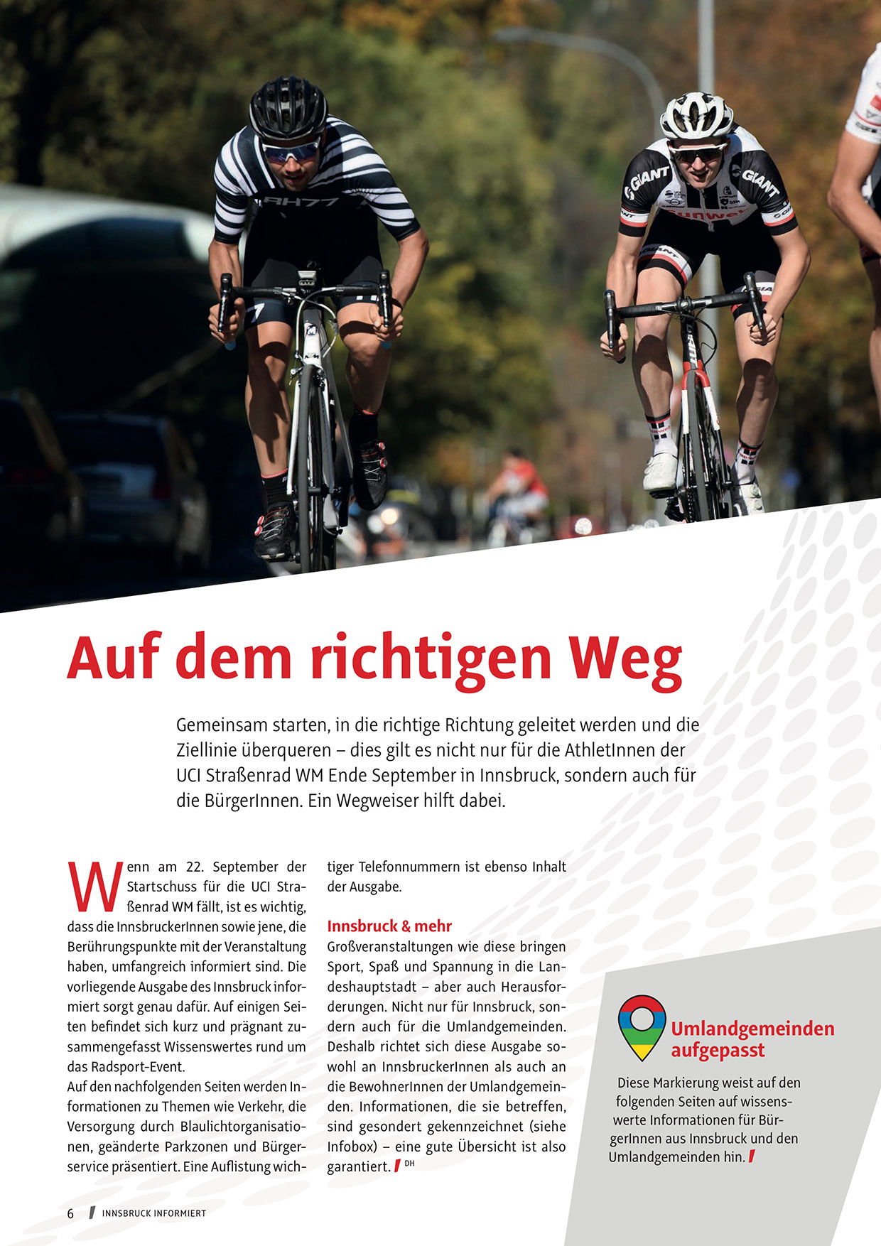 vorliegende Ausgabe des Innsbruck informiert sorgt genau dafür. Auf einigen Seiten befindet sich kurz und prägnant zusammengefasst Wissenswertes rund um