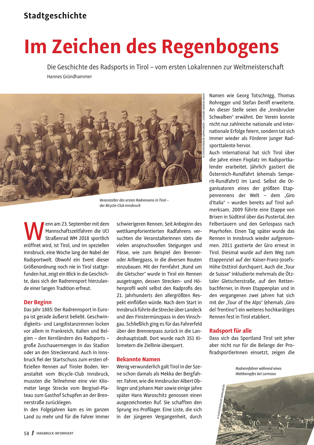 Größenordnung noch nie in Tirol stattgefunden hat, zeigt ein Blick in die Geschichte, dass sich der Radrennsport hierzulande einer langen Tradition erfreut.