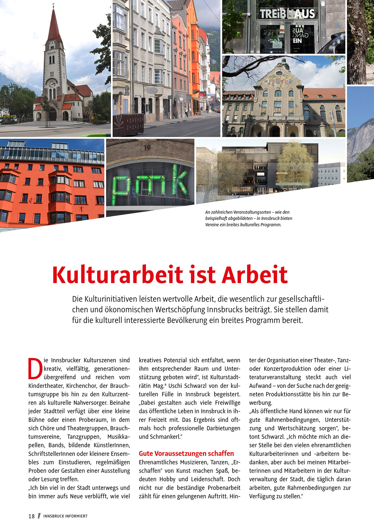 Die Kulturinitiativen leisten wertvolle Arbeit, die wesentlich zur gesellschaftlichen und ökonomischen Wertschöpfung Innsbrucks beiträgt. Sie stellen damit