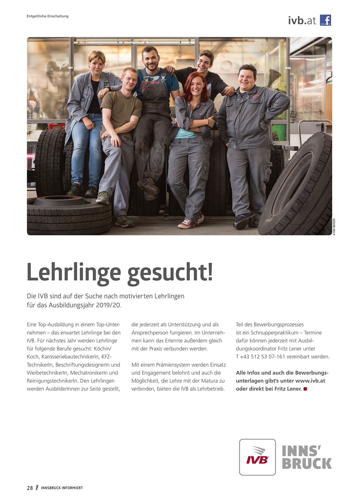 Die IVB sind auf der Suche nach motivierten Lehrlingen