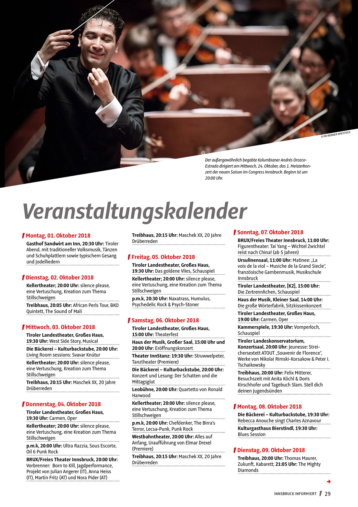 Der außergewöhnlich begabte Kolumbianer Andrés OrozcoEstrada dirigiert am Mittwoch, 24. Oktober, das 1. Meisterkonzert der neuen Saison im Congress Innsbruck. Beginn ist um