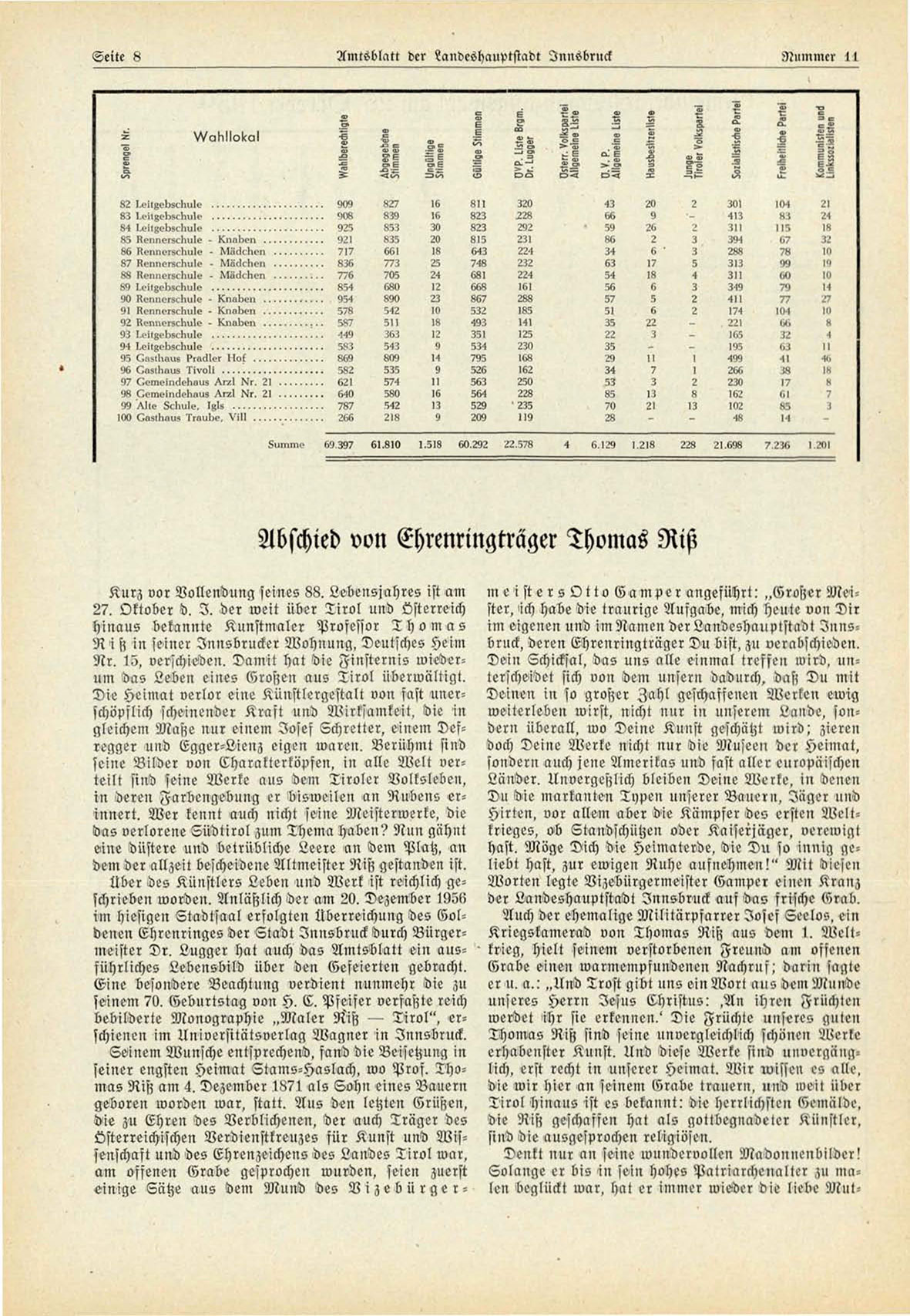 nn hiesigen Stadtsaal erfolgten Überreichung des Goldenen Ehrenringes der Stadt Innsbruck durch Bürgermeister Dr. Lugger hat auch das Amtsblatt ein ausführliches Lebensbild über den Gefeierten gebracht.
