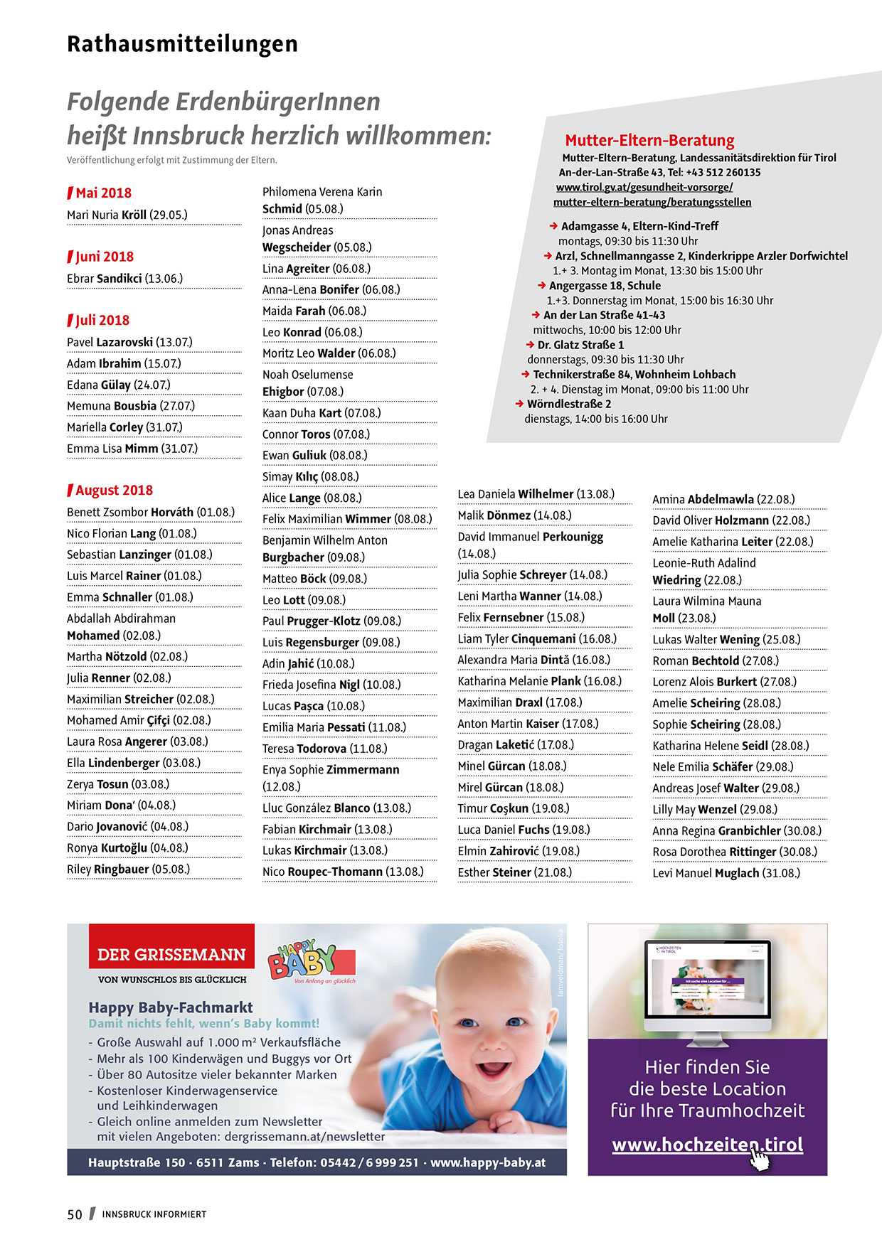 Mutter-Eltern-Beratung, Landessanitätsdirektion für Tirol