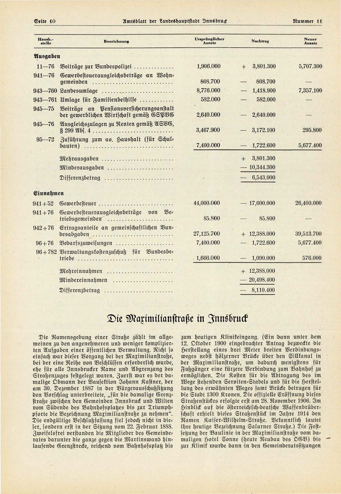 ihre heutige Bezeichnung Saluruer Straße.! Die Festsetzuug der Vaulinie in der Maximilianstraße uom damaligen Hotel Sonne (heute Neubau des ÖGB) bis
